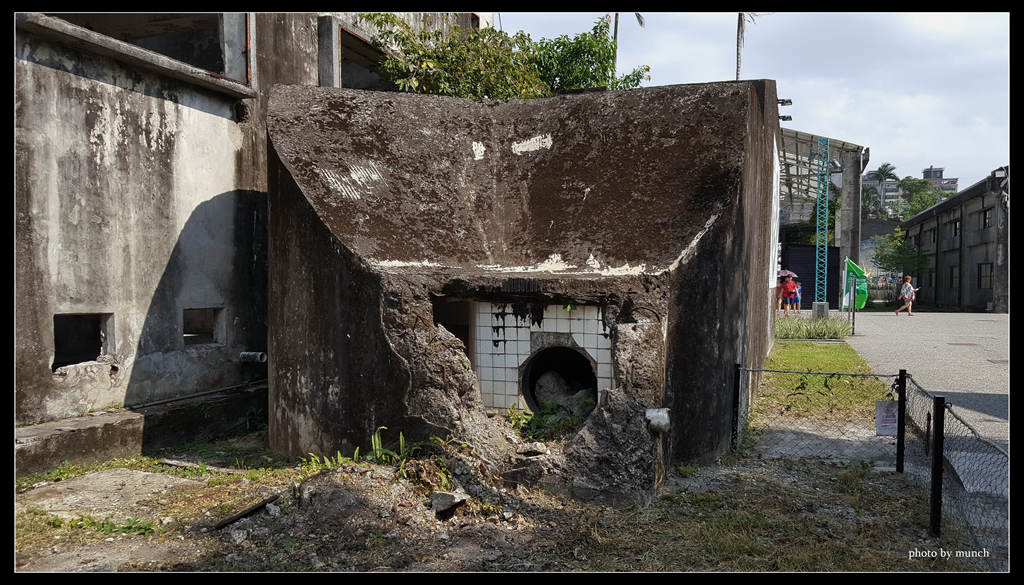 日治時期興建的11號倉庫,原來是放置亞硫酸的物料空間,目前1已修復開放參觀,並且利用過去消防池來造景。