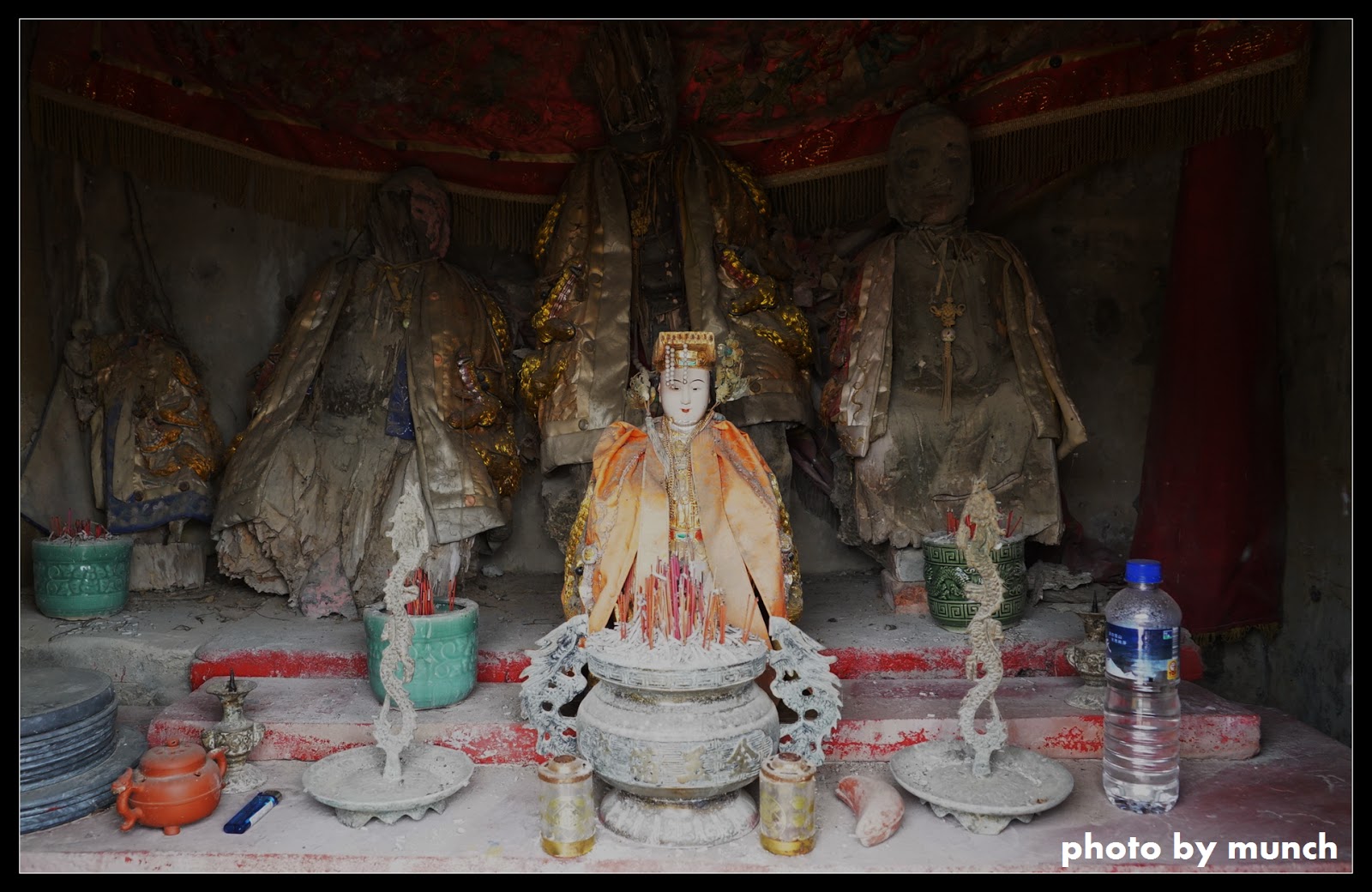 島上有些小廟,過去可能是漁民登島停歇,帶來供奉,一些是漂來的神明,官兵請入供奉,在長期整修下,成為岩壁上的石中廟,或是戰壕中的溝中廟,景觀相當特殊。