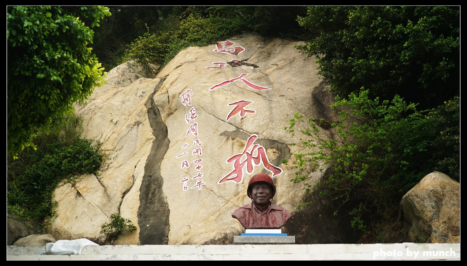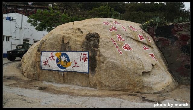 在島上,面對中國的海岸,有著「三民主義統一中國」的標語牆,成為許多中國遊客從廈門搭船來觀光。