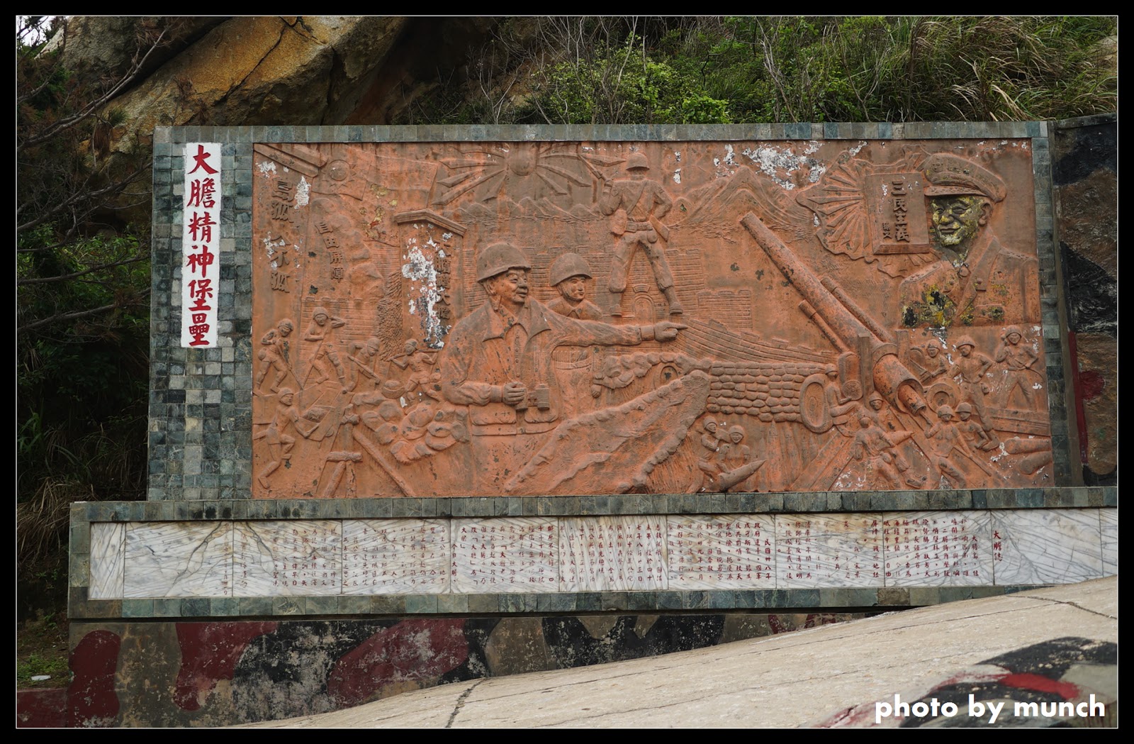 官兵的工藝,上方戰役浮雕,下方書寫大膽戰史的精神牆。