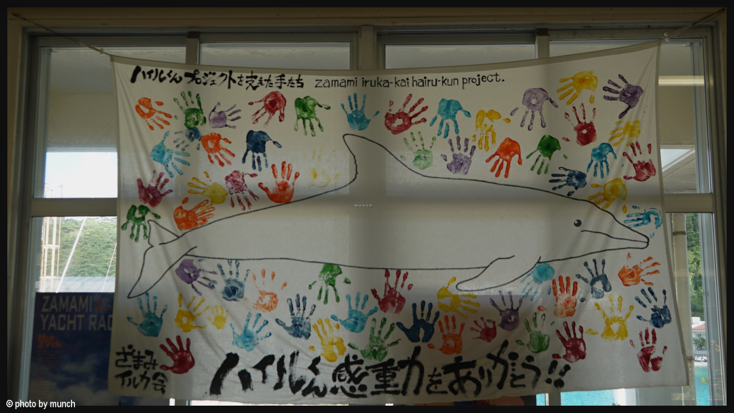座間味島附近是鯨魚交配、繁殖地,每一年月到四月,大翅鯨等鯨群出沒,成為保育重點,也是觀光賣點。由於時間不對,只能看雕像止渴。