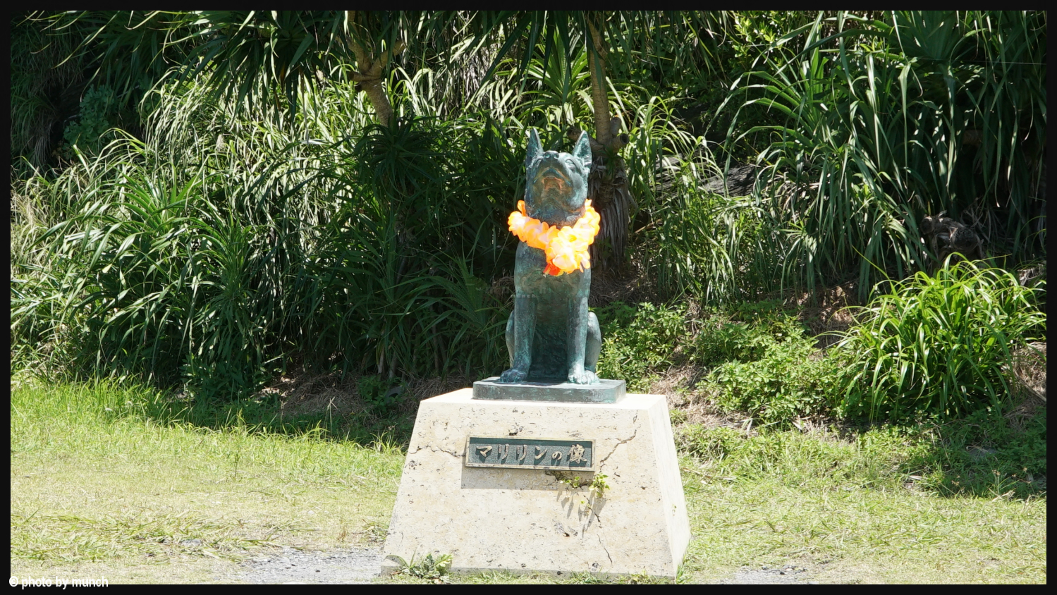 在 阿嘉島與座間味島上,各有一頭犬銅像,故事是阿嘉島公犬小白(シロ),愛上座間味島的母犬Maririn(マリリン),就常常游泳渡海三公里去會情犬,成為毛孩的島嶼動犬愛情故事,所以立下銅像,作為紀念。