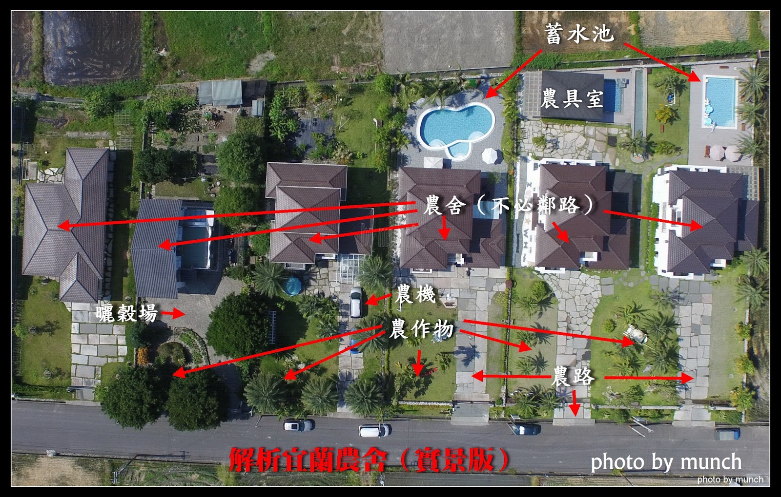 現今,金德版宜蘭新農村又將出爐,大家在集中討論新農舍如何豪華配置,完全是受誘瞎攪,問題是不只違法農舍不該在農地,還論如何配置?就是合法農舍,也該再度思考集村居住。