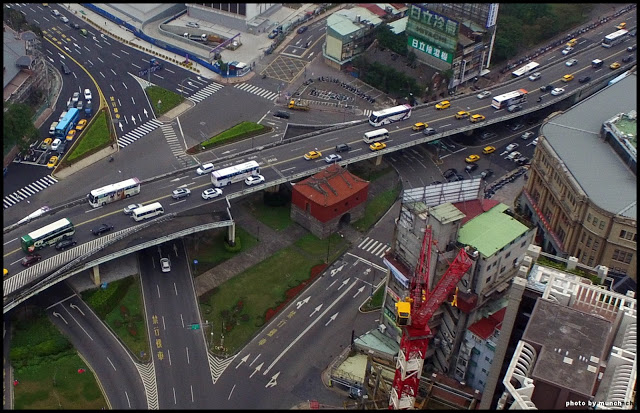 空拍照片是高架橋未拆除前,北門靠馬路的樣貌。