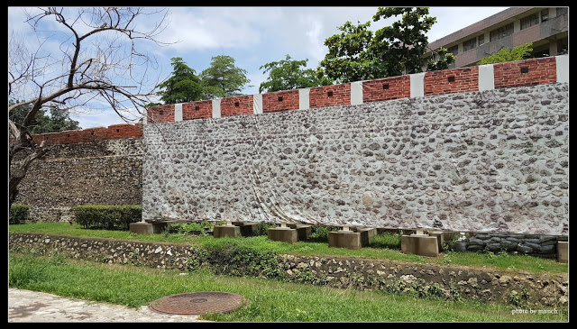 一部份城牆,尚未建成,暫時以照片塑膠幕呈現,讓高雄人稱為「會飄動的城牆」。