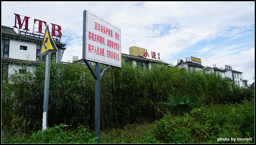 圖六、2017年,洱海環湖沿岸大型餐廳勒令停業,政府製作告示牌,勸阻遊客消費。