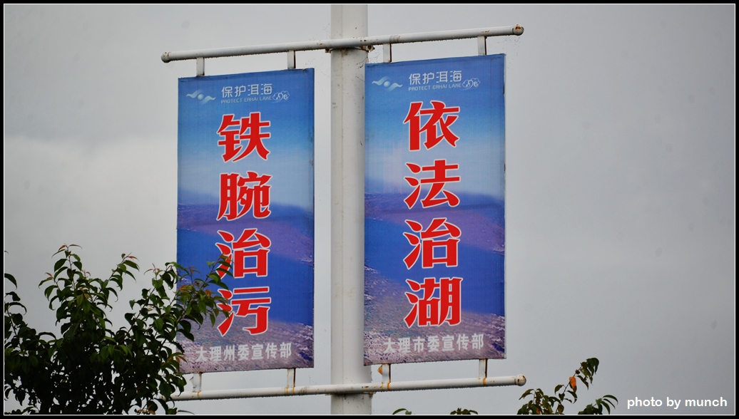 圖三、觀光狂潮造成洱海污染,路上處處可見整治洱海的標語。