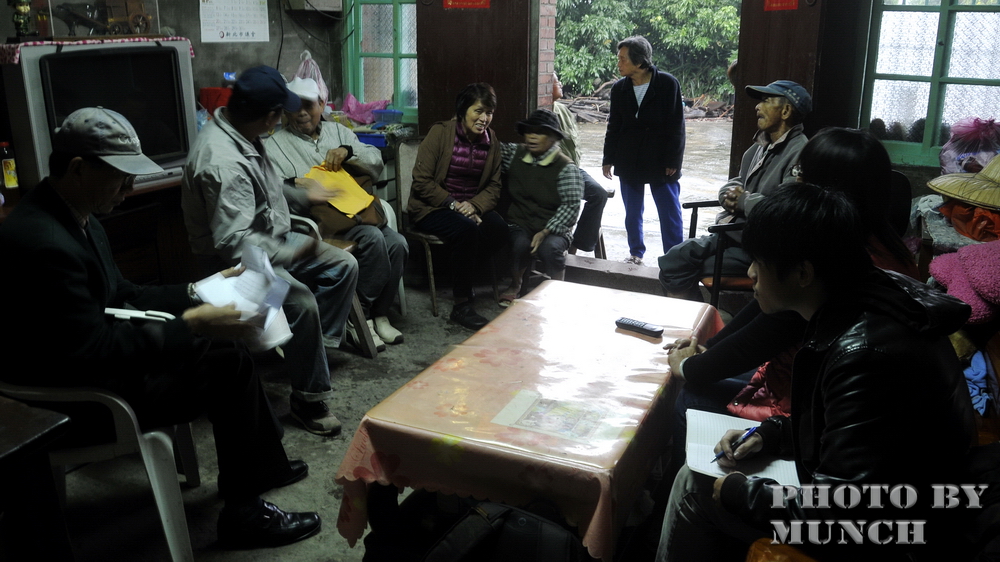 在見面交談中,多數農友都到場,表達求助無門的痛苦,汪家老阿祖也推著助行器,沈默的聽著討論,神情顯露的不安與哀傷。一位高齡百歲的人瑞,竟然還必須受到失去家園的折磨,對一個歡慶百年的國家,無異是老有所終的最大諷刺。