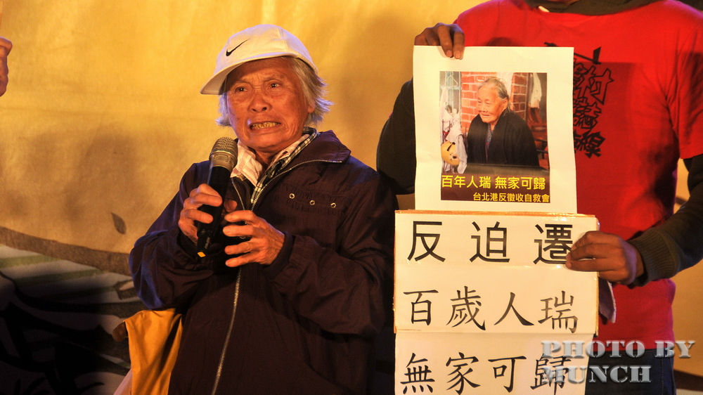 同年在一場反迫遷大會上,汪菊上台說明台北港徵收,她還是「阮不愛徵收,請大家救救阮!」的短短數語,然後悲泣大哭。