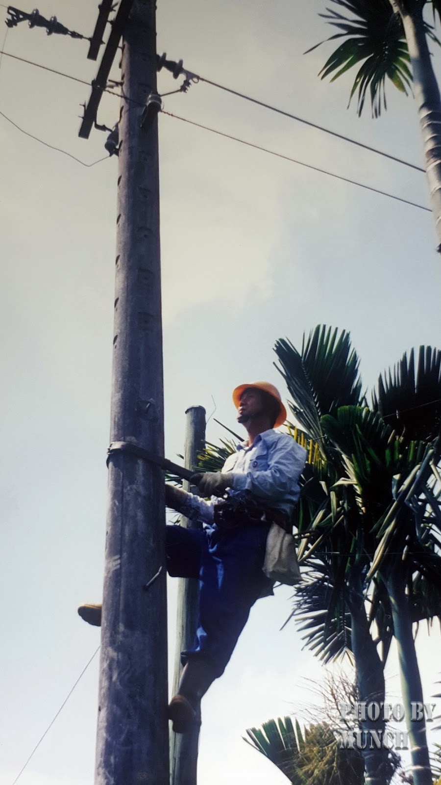 當時跟著工班,幾乎是24小時輪班掛在電桿上,讓一個鄉鎮、一個村落,完成通電,展開日常生活。