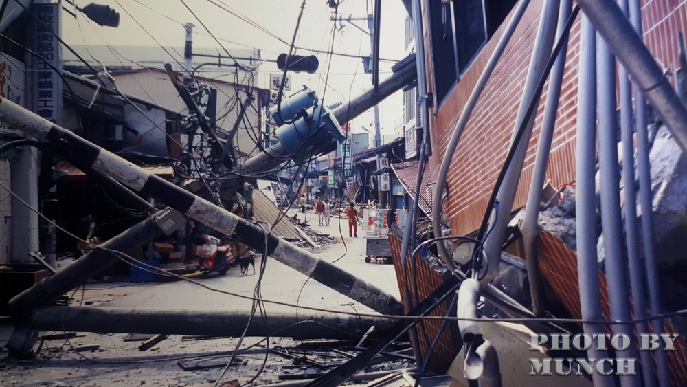 南投市部分建築倒塌,但是921當天餘震不斷,很多居民都不敢回家中,就全部待在街上。