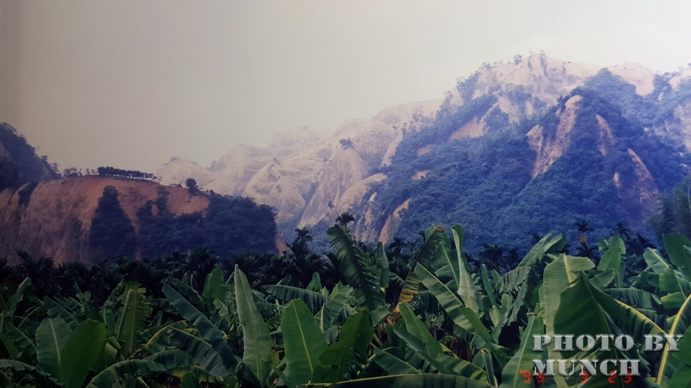 當時一餘震,就可以看見山頭飄起沙塵,像是山在冒煙。
