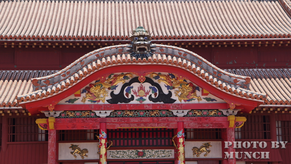 特別是正殿外的「龍」,其實應該說是「蟒」。注意看門面之上的「龍」,身形是「四爪」,算是「蟒」。因為只有中國皇帝可以用「五爪金龍」,琉球受冊封為王,當然不能用九五之尊的龍,只能用「四爪之蟒」。