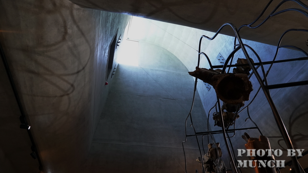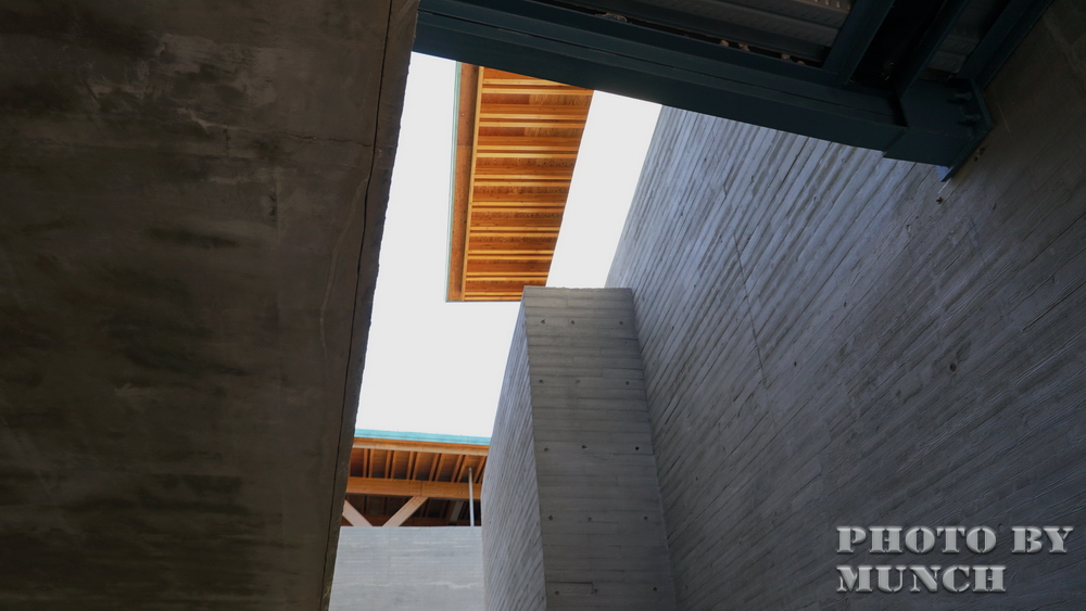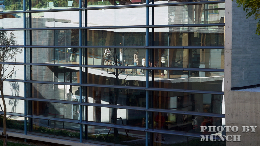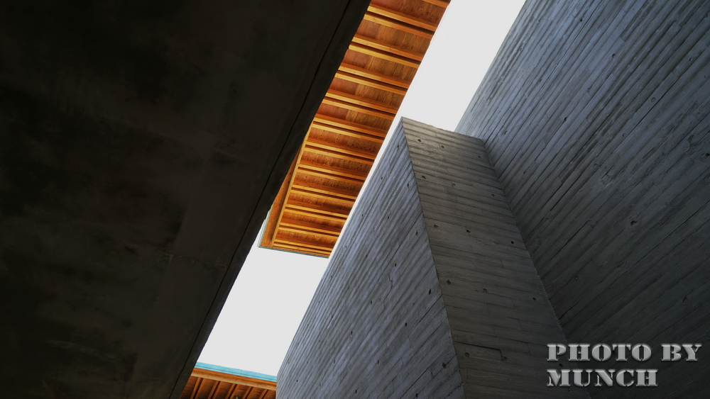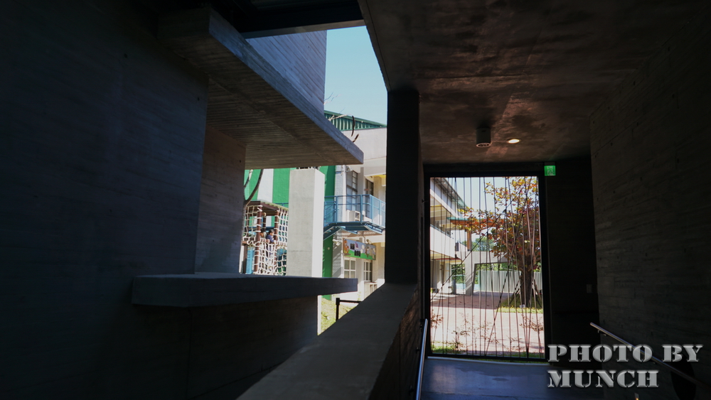 建築以清水模為主,館舍中有許多通道、走廊,在簡易的色澤下,搭配人工燈光或自然光影,切割出多色溫的視覺感受。