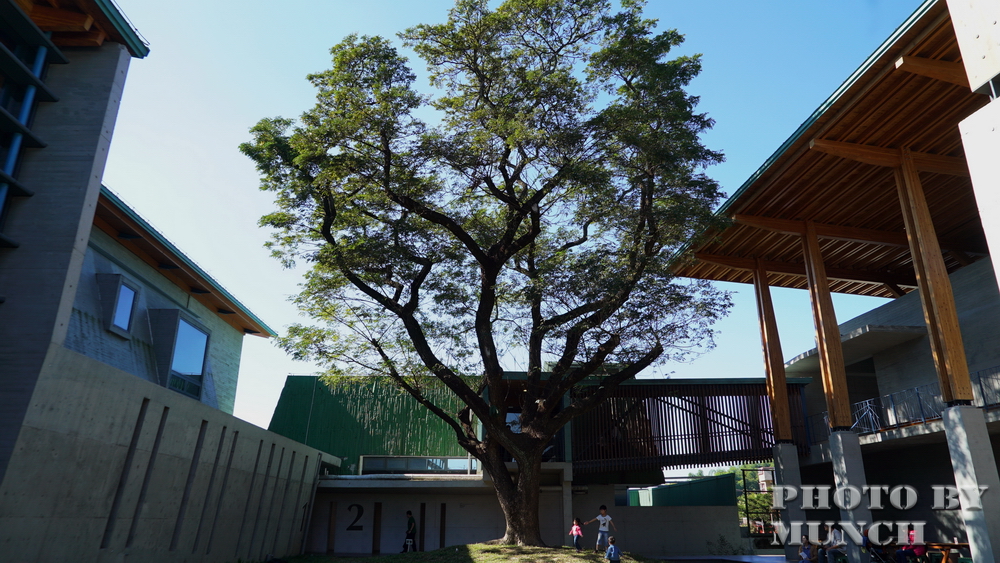 首先,值得讚許是保留舊校區的雨豆樹,讓建築圍繞興建。