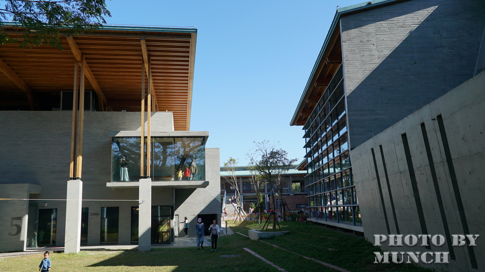 園區設計不是單棟建築,而是以不同館舍、校舍構成的環繞建築群,中間是保留雨豆樹的綠地庭園,可以是遊客的休息場所,也是學生的活動空間。