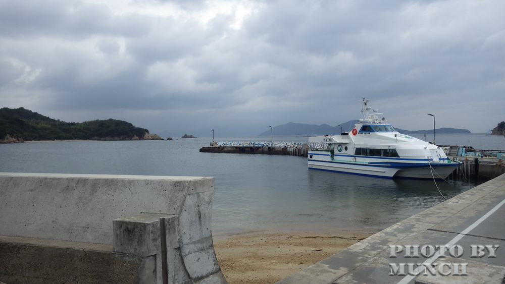 船離開高松港,八公里外就是大島,船行約20分鐘,船上有「入所者」及探訪家屬,還有準備上班的工作人員,其他就是六位登島參訪者。微雨中,船隻緩緩靠港,一個小小的碼頭,碼頭上已經有介護士等候,協助「入所者」上下船。