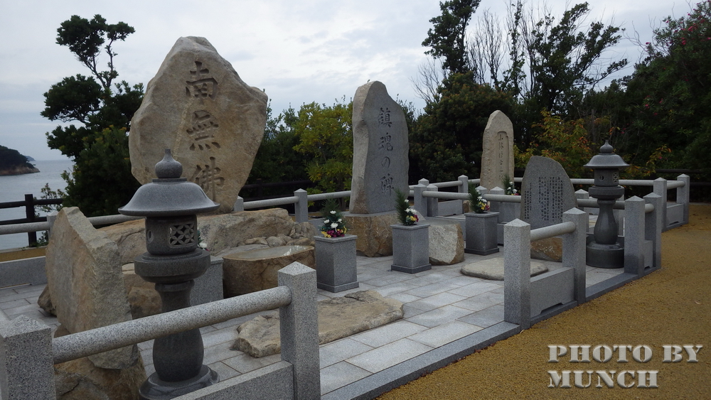 早期,日本在「隔離政策」下,集中拘留癩病患者,禁止離島、通婚與生子,島上前後收容居住3923名入所者,園內死亡者1970人。導覽小姐帶我們登上高處的納骨堂,表示塔內供奉過世入所者的靈位,並且在旁設立許多鎮魂塔等碑石,安慰亡魂。