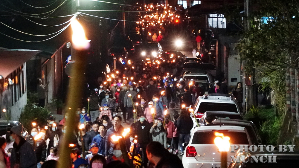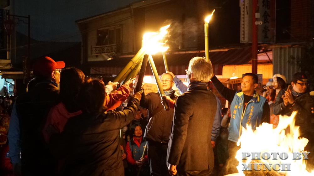 新竹北埔居民在元宵節,有著持油笐(竹列)火把,從慈天宮繞行秀巒山祭拜山神的習俗,最近幾年推廣成地方節慶活動,今年吸引上千人參與活動。