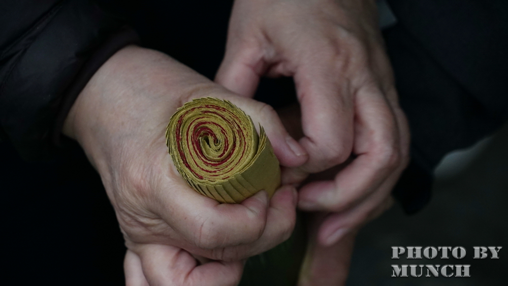 燃燒的火蕊,以金紙捲塞填充,有著燒金紙謝神的心意。