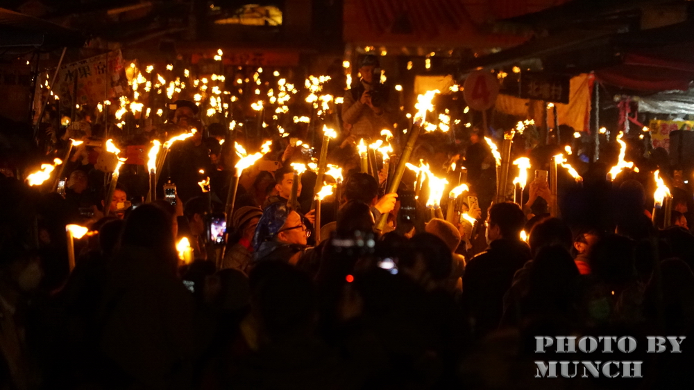 廟前廣場燃起一片火把海,這是必拍景觀。