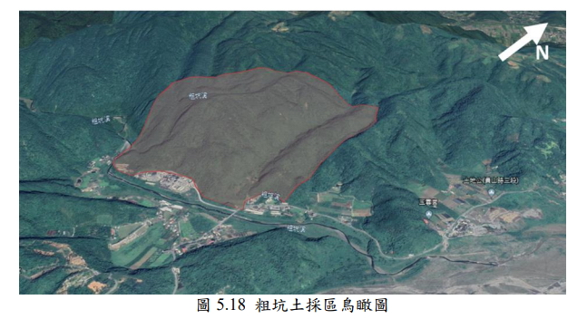粗坑砂石開採區原本是件老案,2011年一度提出,但是在當時民間強烈要求國土保育思維下,就只是一件曇花一現的紙上計畫,沒有掀起太多漣漪,就靜靜消隱世間。
