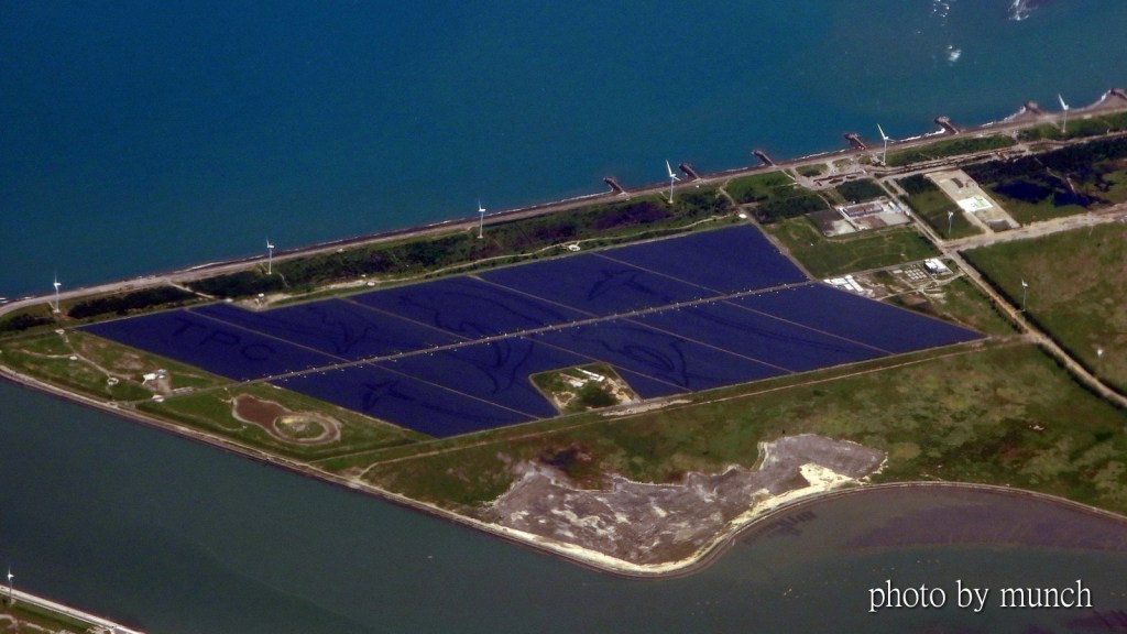 搭機遙望彰濱工業區,赫然發現崙尾東潮間帶的水面型光電場,已經建了上去。