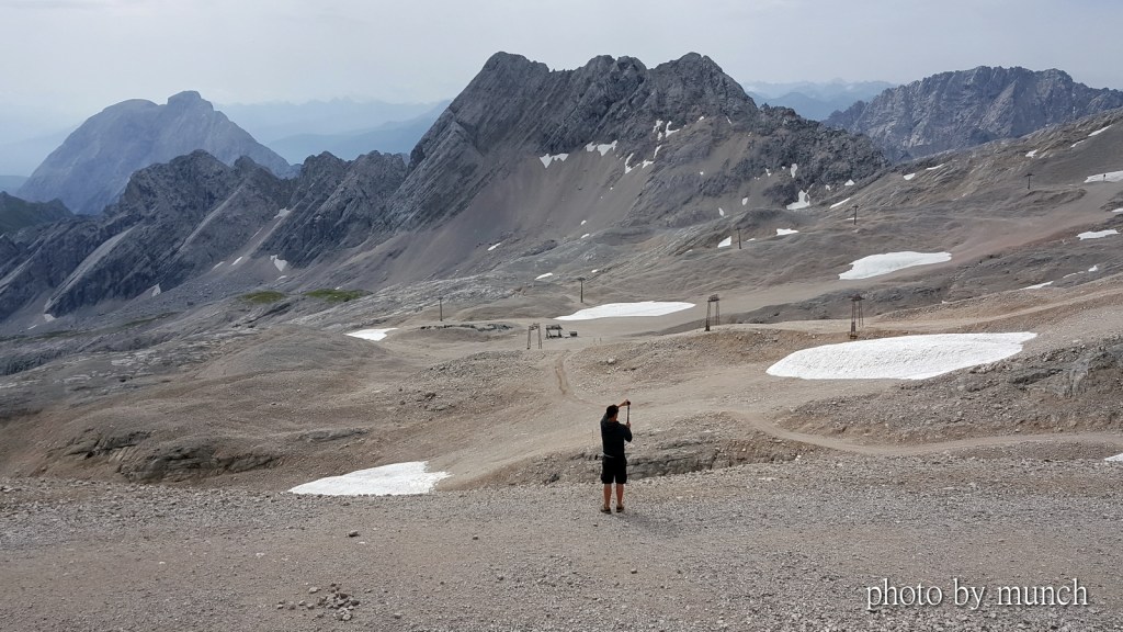 2017年前往德國楚格峰,山頂上過去終年有雪,遠雪冰川(Schneeferner)更是滑雪者的聖地。但是近30年來,隨著暖化問題,夏日融雪日益嚴重,不僅白雪山頭禿成石礫山坡,就連遠雪冰川不斷萎縮,北端山頂部分已經縮小25%,南端山腳部分更縮小到剩下原來面積的6%。