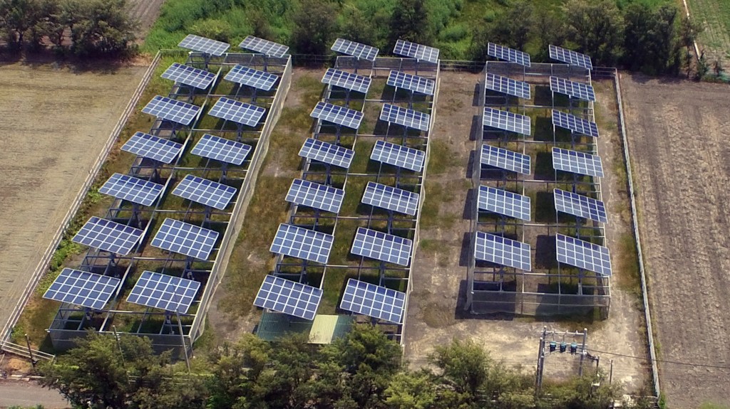 太陽能光電進入農地,最大問題是如何與農業共生,光電業者實驗追日型光電板,獲得最大發電效益,同時增加間距,讓土地增加日曬,減少影響農作。