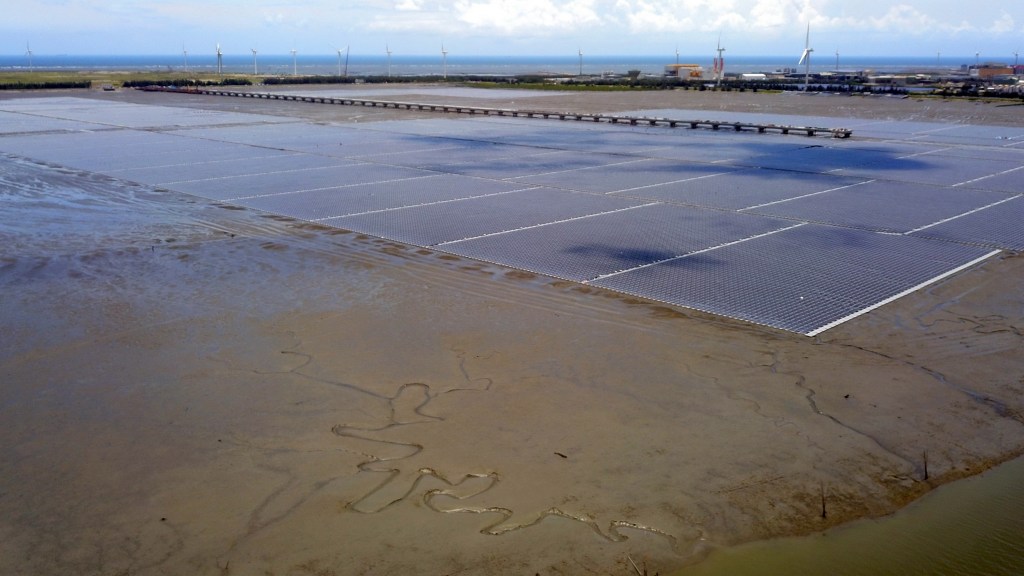 彰化彰濱工業區的崙尾東潮間帶,鋪設浮動式光電板,在退潮時緊貼土地,像是舖地磚,影響生物棲息,引發生態疑慮。