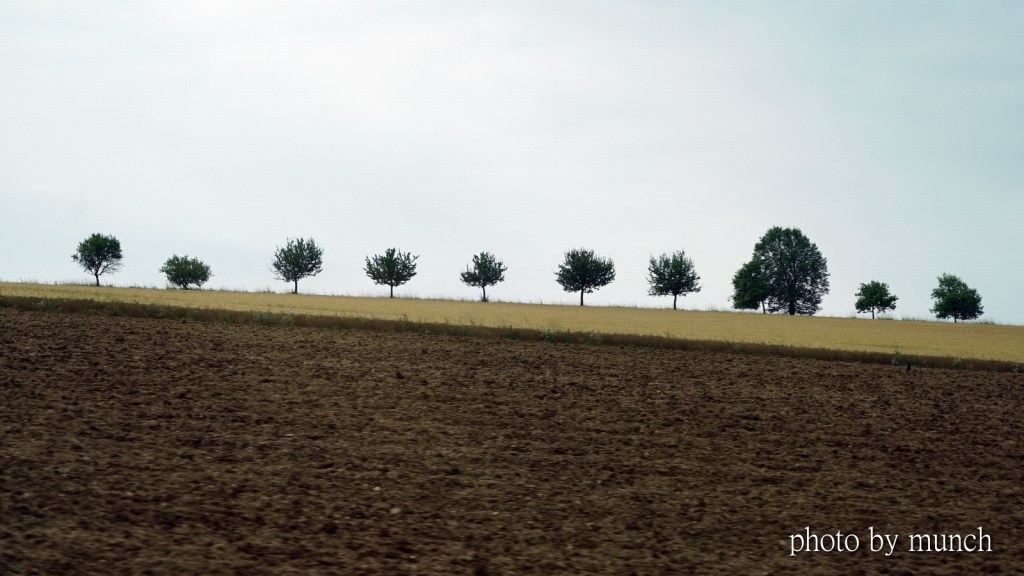 重點是,在歐洲的農地、山丘,不會出現違法工廠、農舍,切割碎裂化。因此就像一張大畫布,渲染的展開,樹木就像畫布上的主題,以各種孤傲、美妙之姿,形成動人的田野景色。
