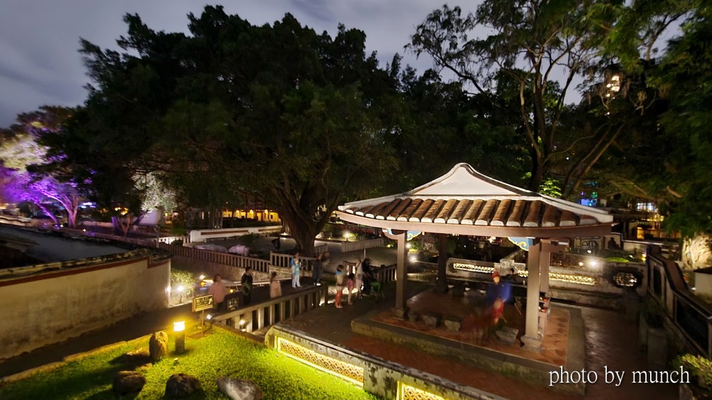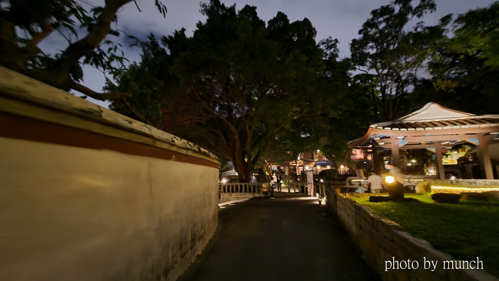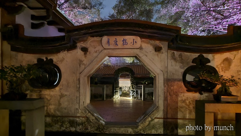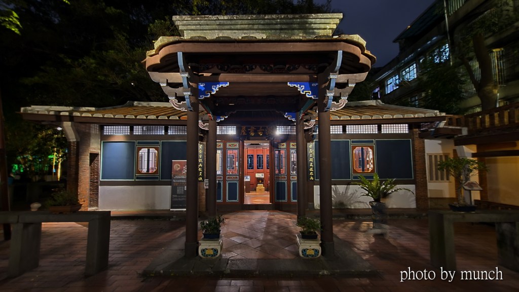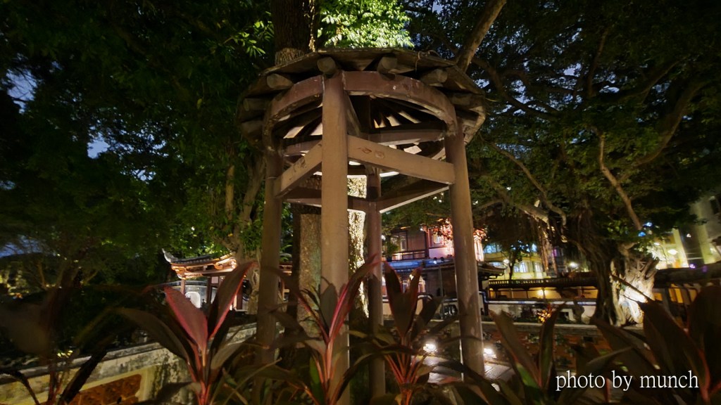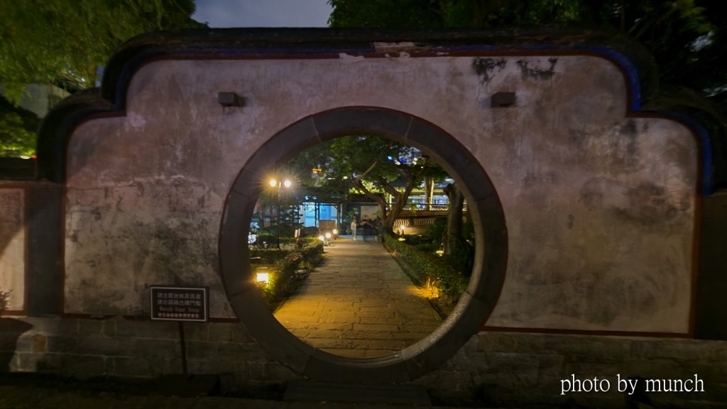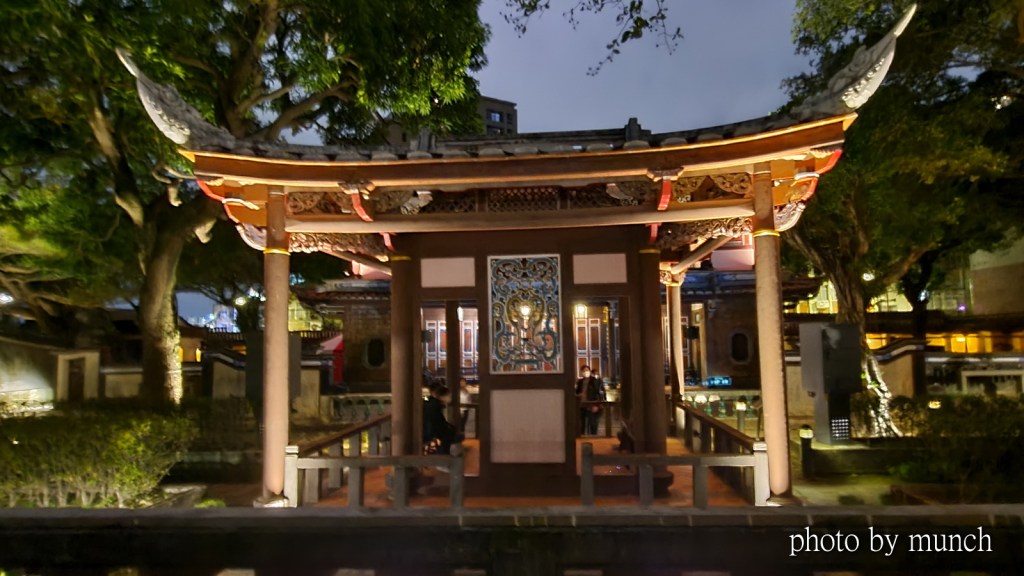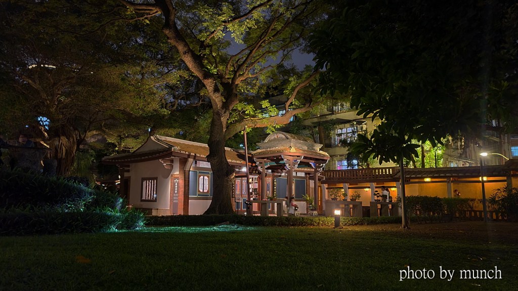 晚上,進去夜拍,燈光有些雜亂,但是還是在夜色中看見不一樣的林家花園,因為在夜色的遮蔽下,反而去除太多現代背景,一瞬間聚光,還真以為進入古時的夜明轉花園,隨風撲流螢的愜意。