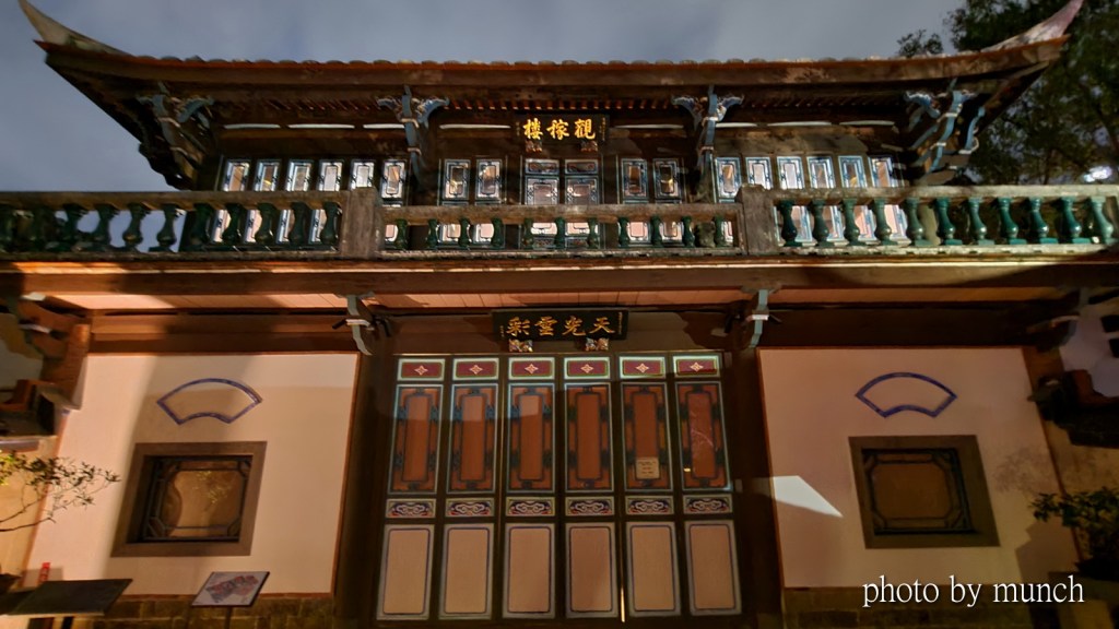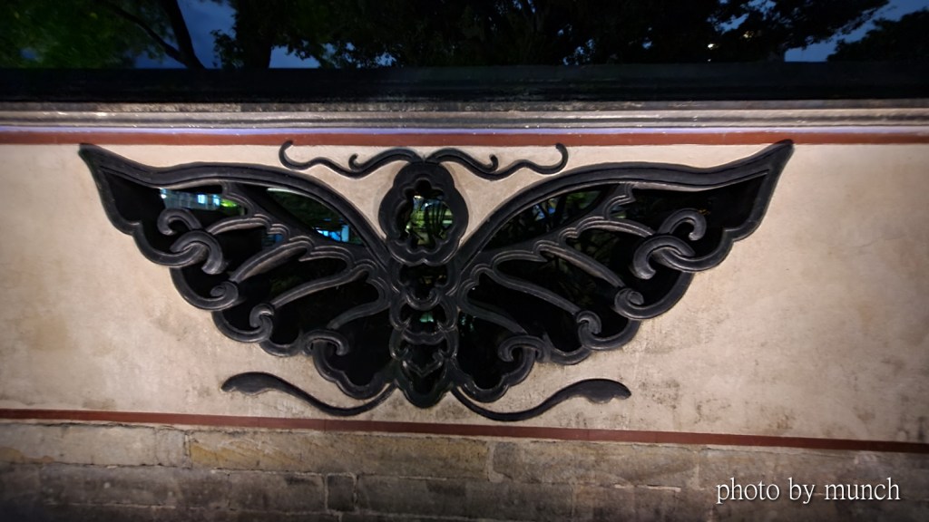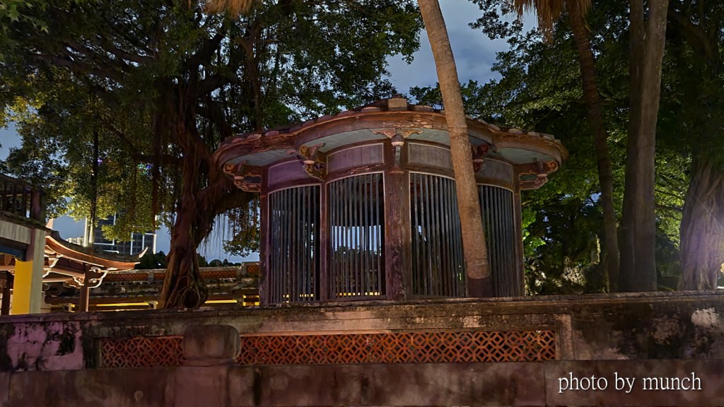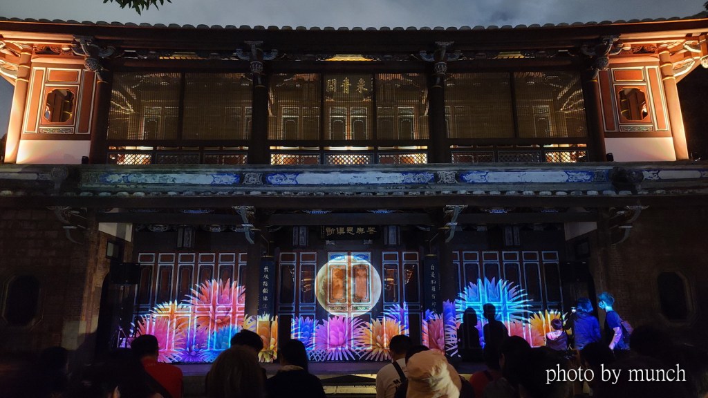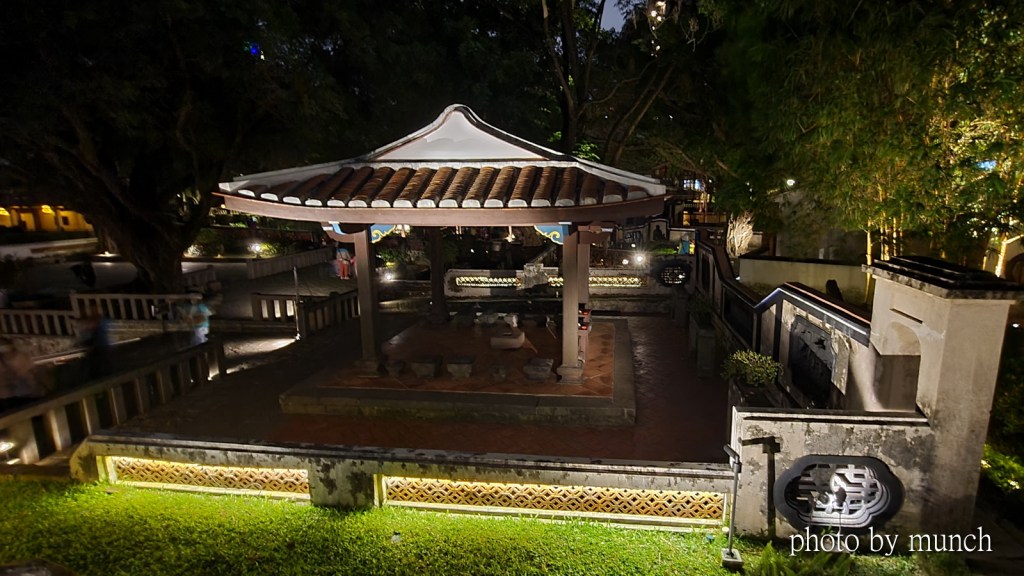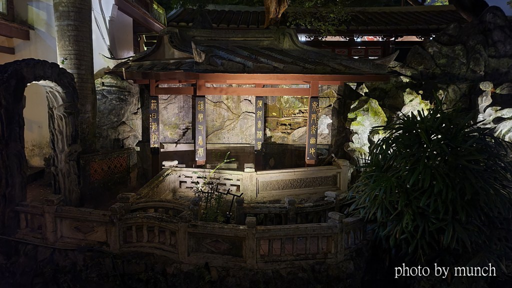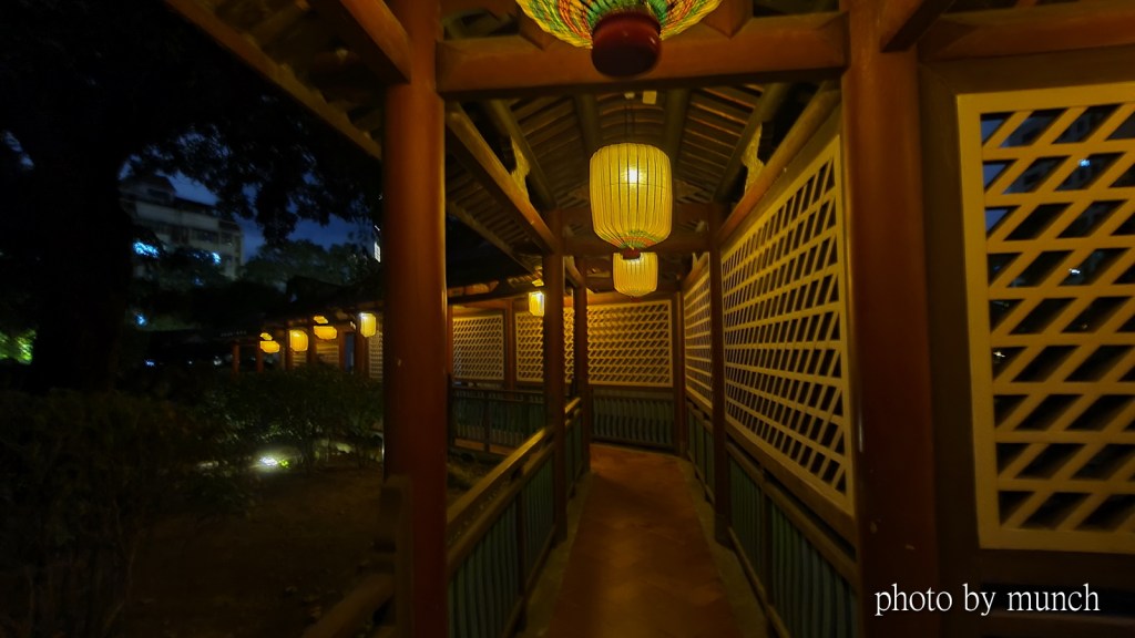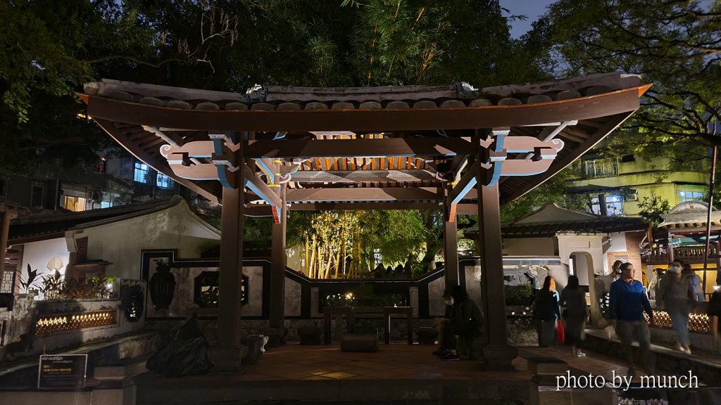 晚上,進去夜拍,燈光有些雜亂,但是還是在夜色中看見不一樣的林家花園,因為在夜色的遮蔽下,反而去除太多現代背景,一瞬間聚光,還真以為進入古時的夜明轉花園,隨風撲流螢的愜意。