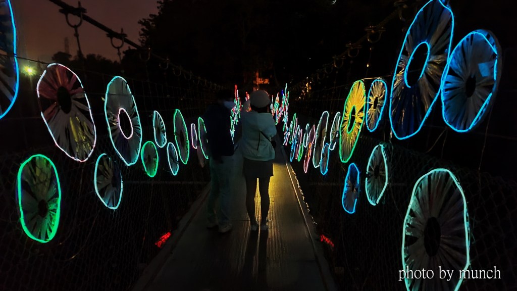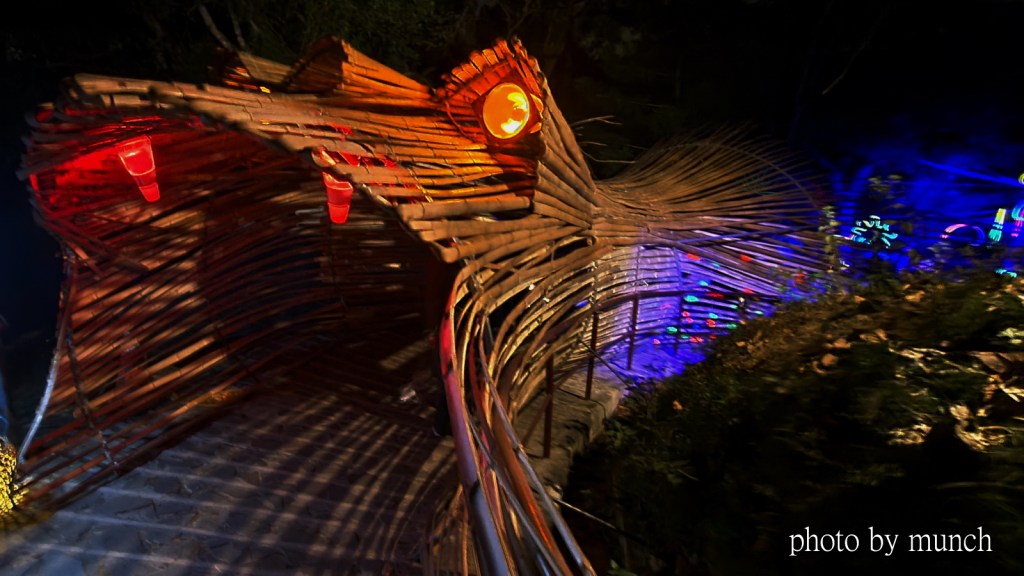 通過吊橋,以環保編織的再生藝術,有如大蛇的鱗片,形成「化蛇織影」的創作。