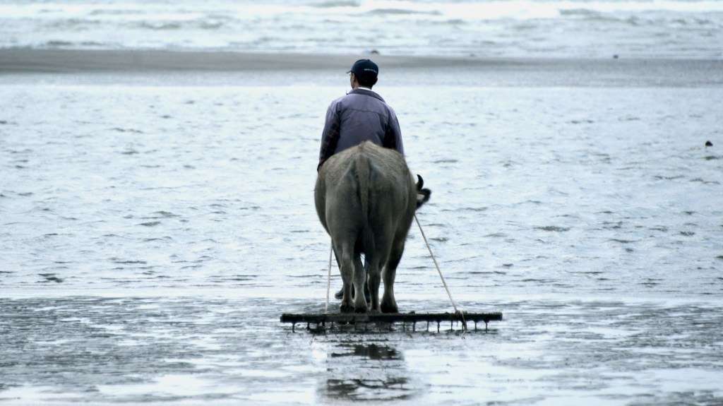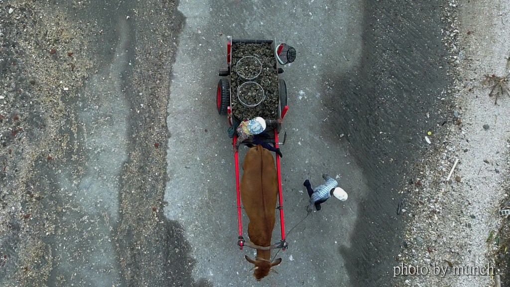 有工作,就有存在價值,30多年前村落牛隻甚多,每天搶退潮下海到蚵田,行走唯一一條蚵殼海道,有時還會塞…牛車。