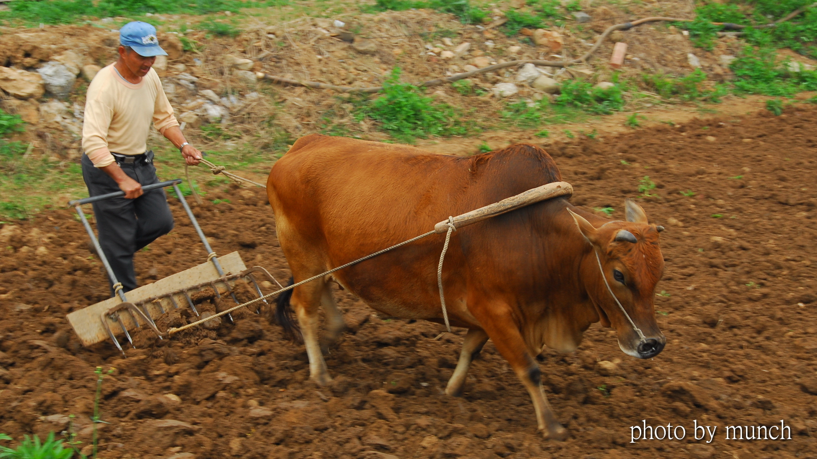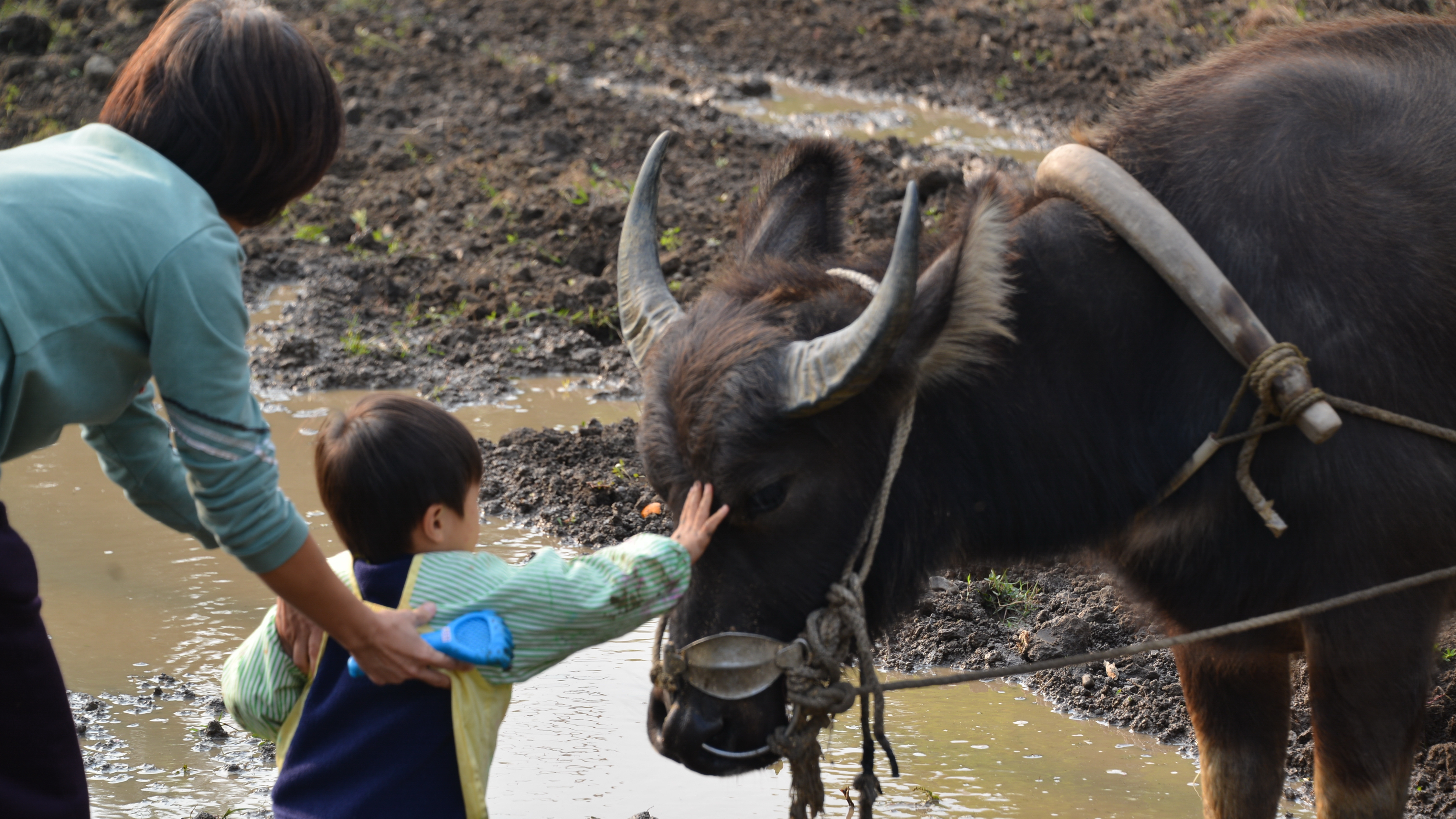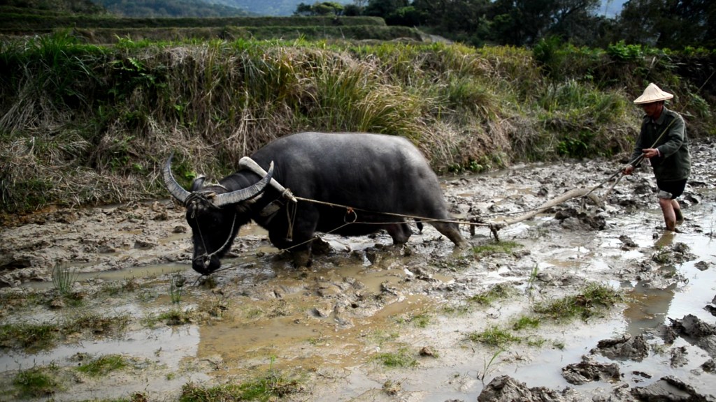 過去山區水梯田,田區狹小,交通不便,牛隻是主要動力,無論犁田、搬運, 甚至出山採購,牛隻都是重要夥伴。但是馭牛不是靠牛鞭、牛索,而是靠教導與信任。