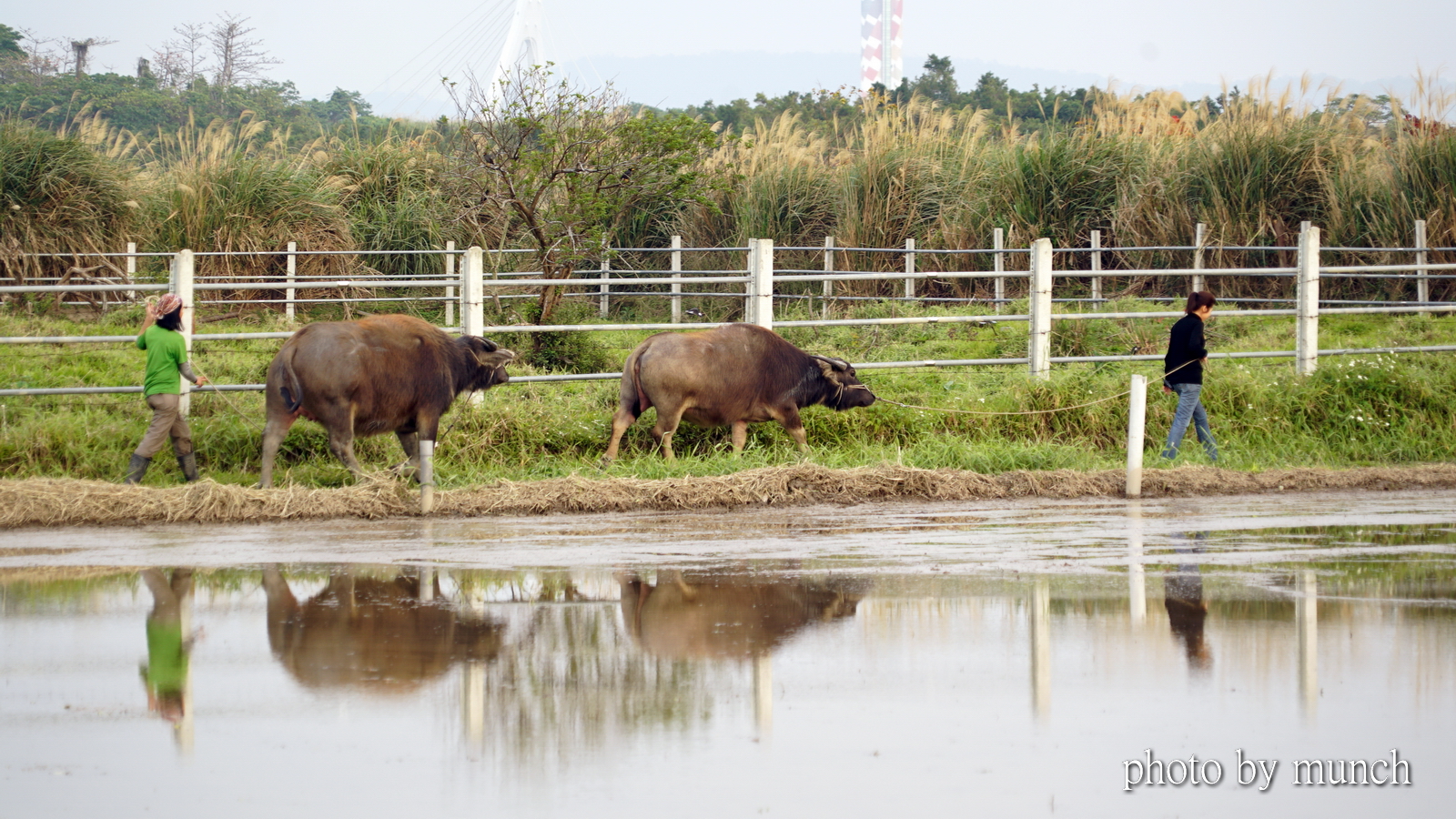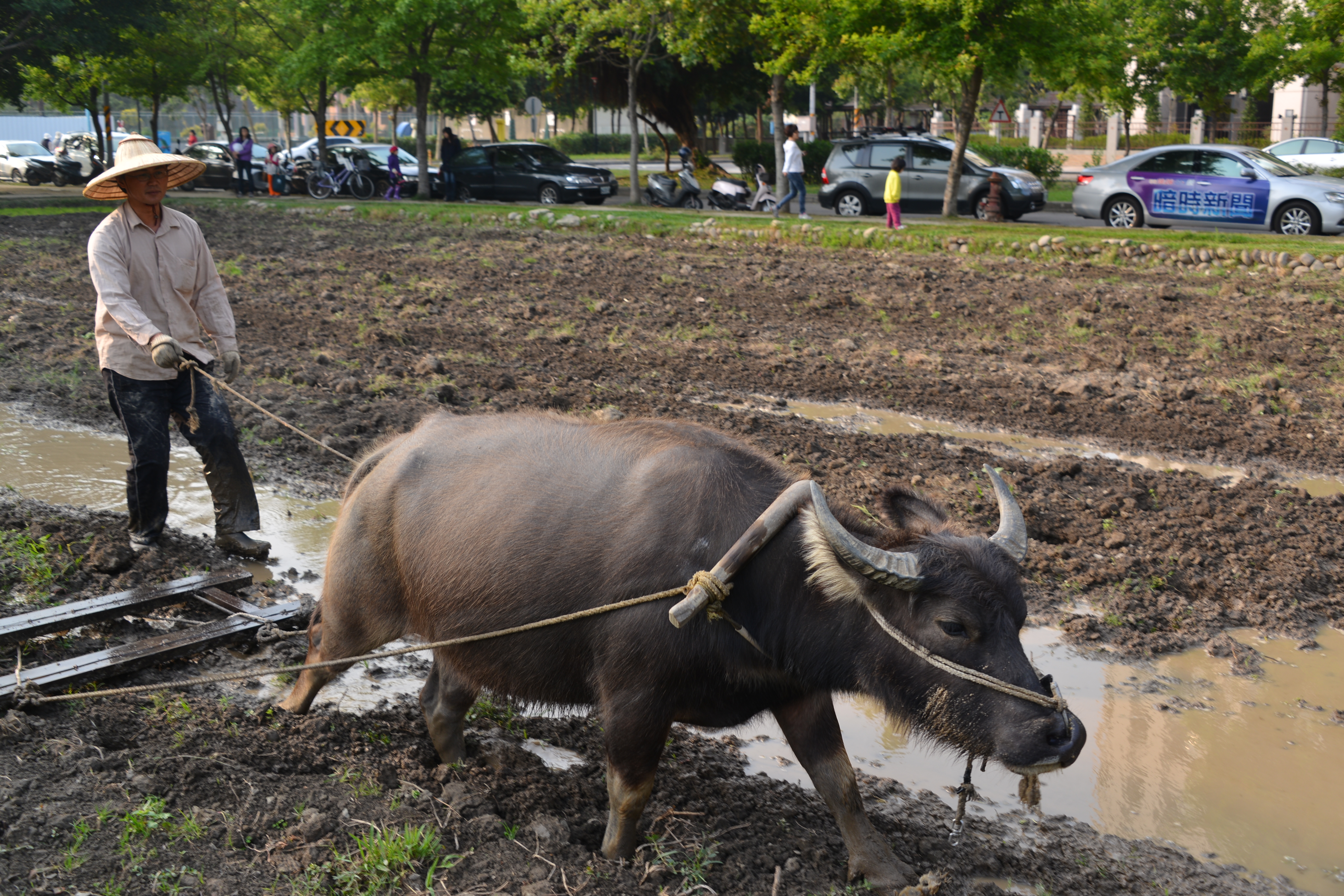 關渡濕地公園內有牛,幫忙犁田踩地,維持過去農田濕地的景象。但是台北市最金貴的關渡平原,早已無牛蹤,甚至也沒有會犁田的耕牛,於是只好向外地求援。