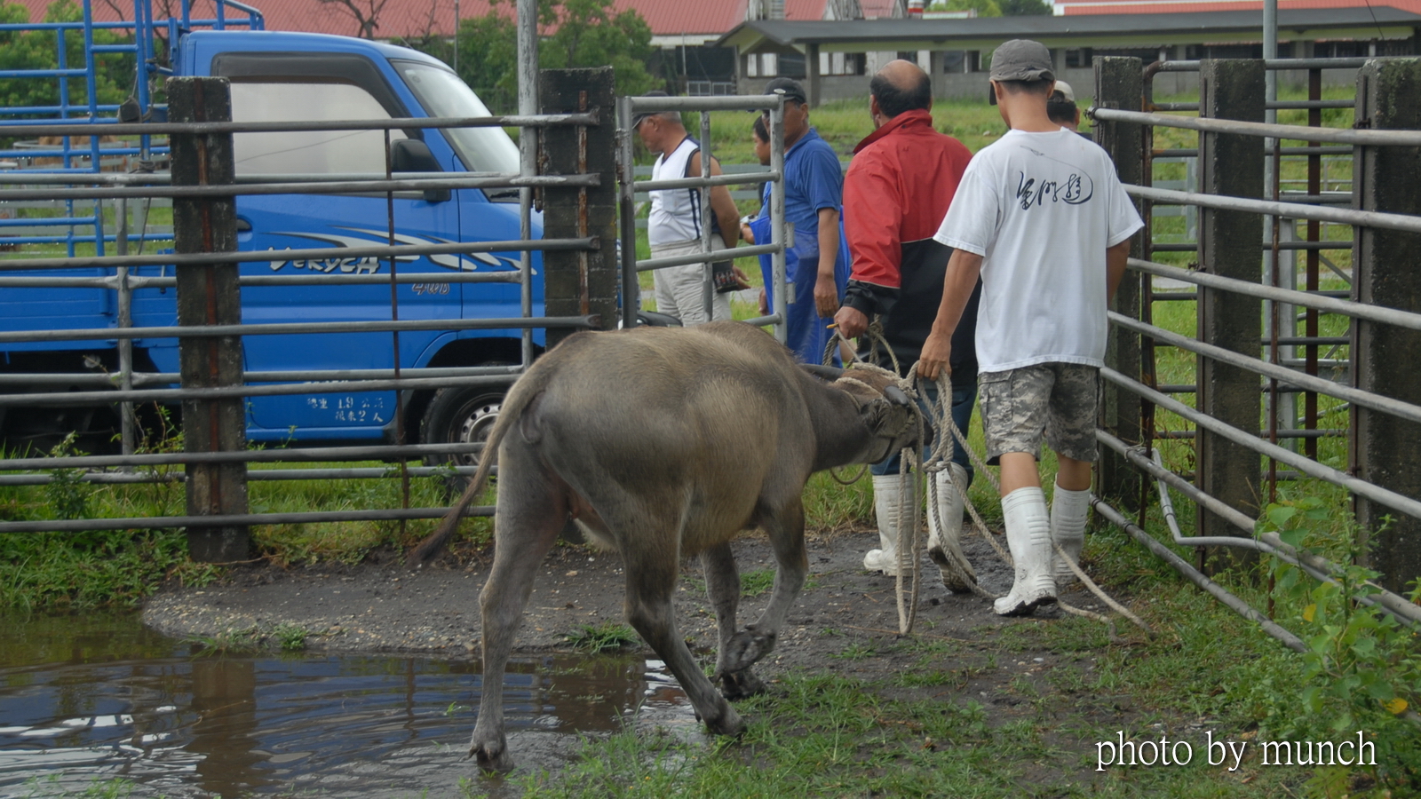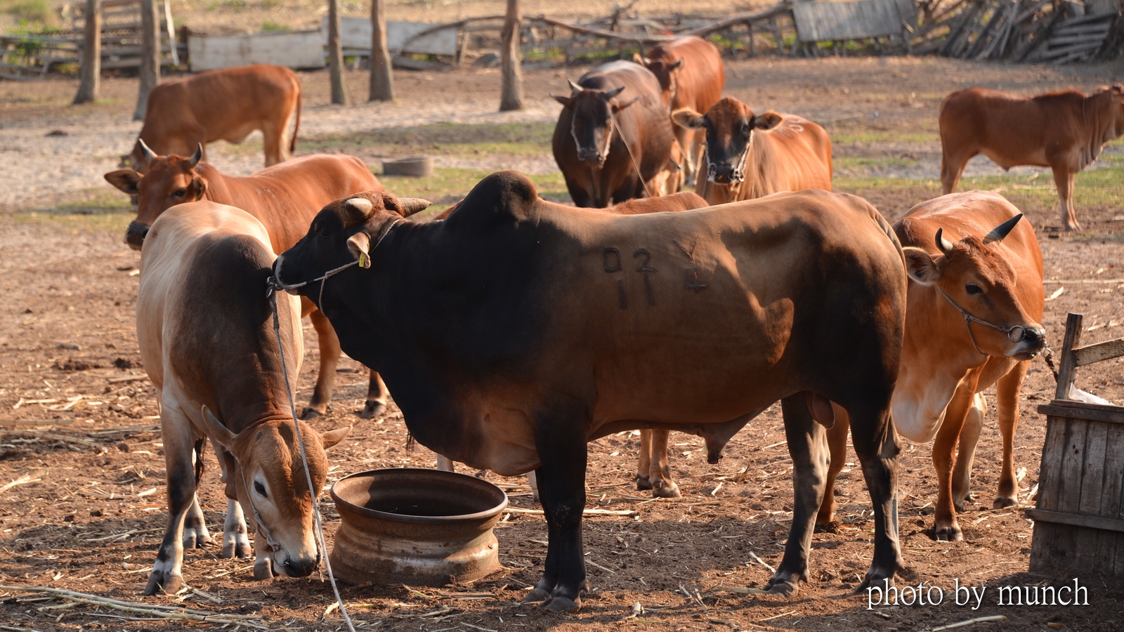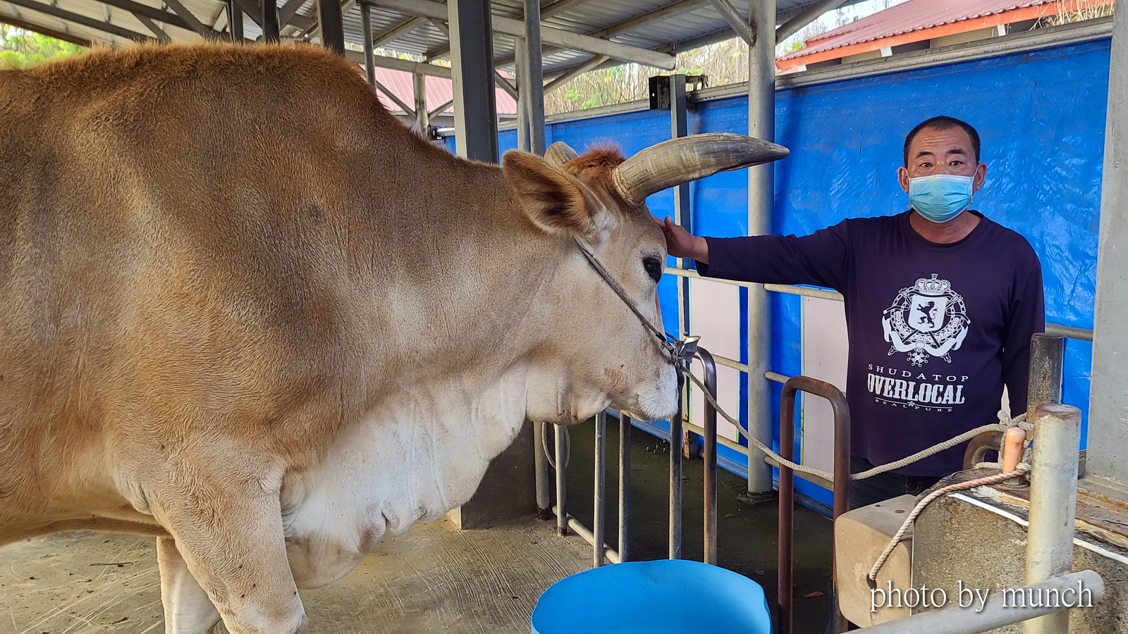 他說,牛會放牧到外面草地,但是還是要綁住,因為這些牛,來自不同地方,各有脾氣,不綁會相鬥,甚至還會分邊打群架,拉都拉不住。所以,除非交情好的牛,才會個別放封草地自由行動,晚上、雨天都會關棚綁住。