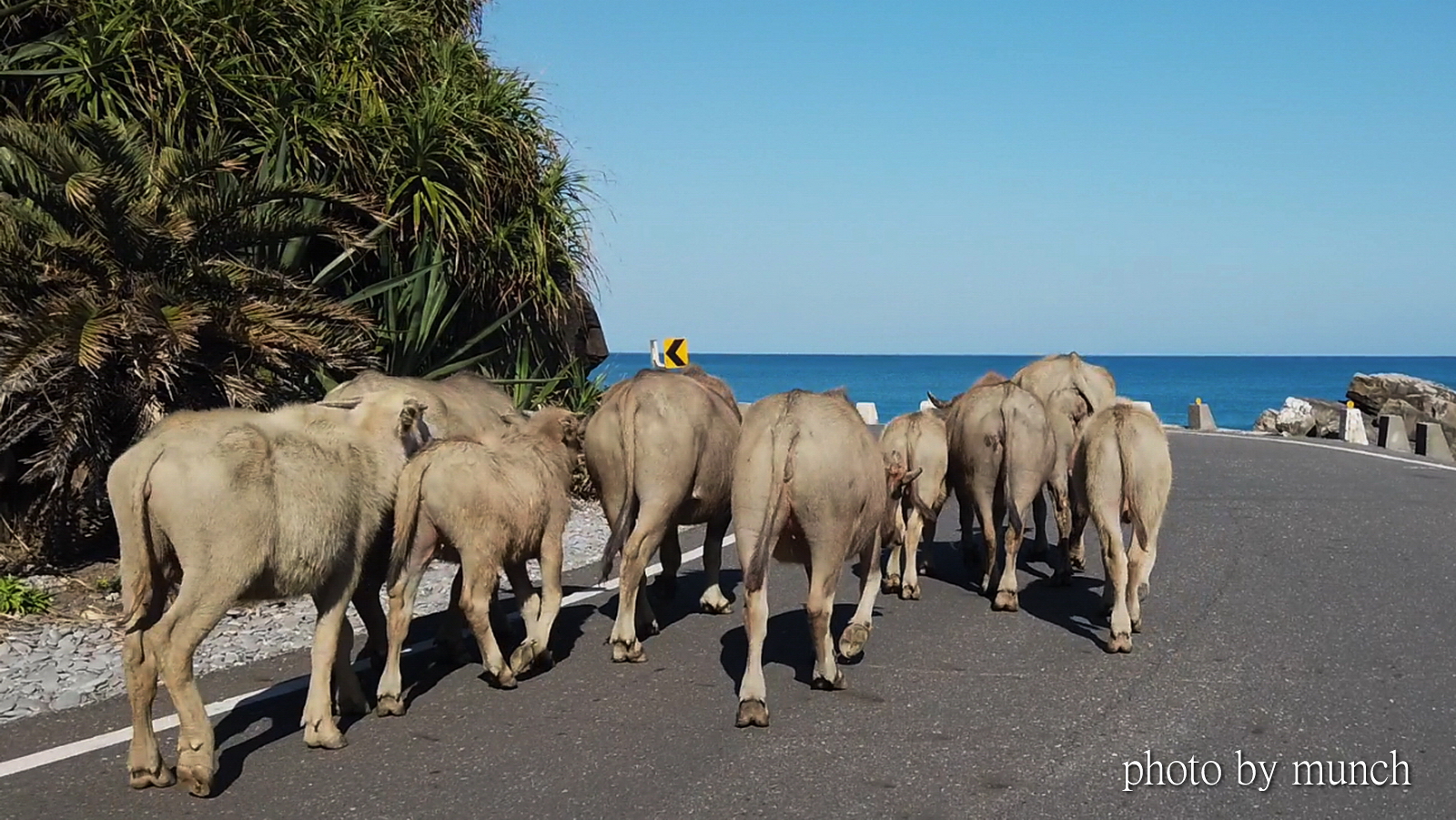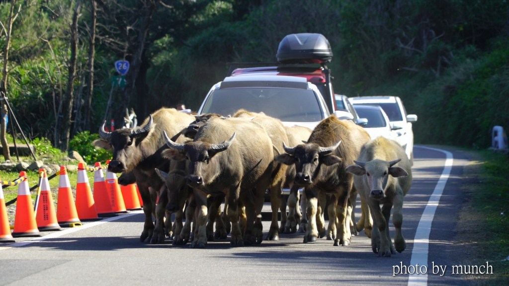 其實不該驅趕牠們,就算不是原生野牛,但是也生活在此處有一段時日,牛群上路移動,就當成非洲草原的野牛遷徙,勿長鳴喇叭,勿以車逼牛,不要驚擾的讓牛行走,也不要白目的過度近牛,給個共存的空間。