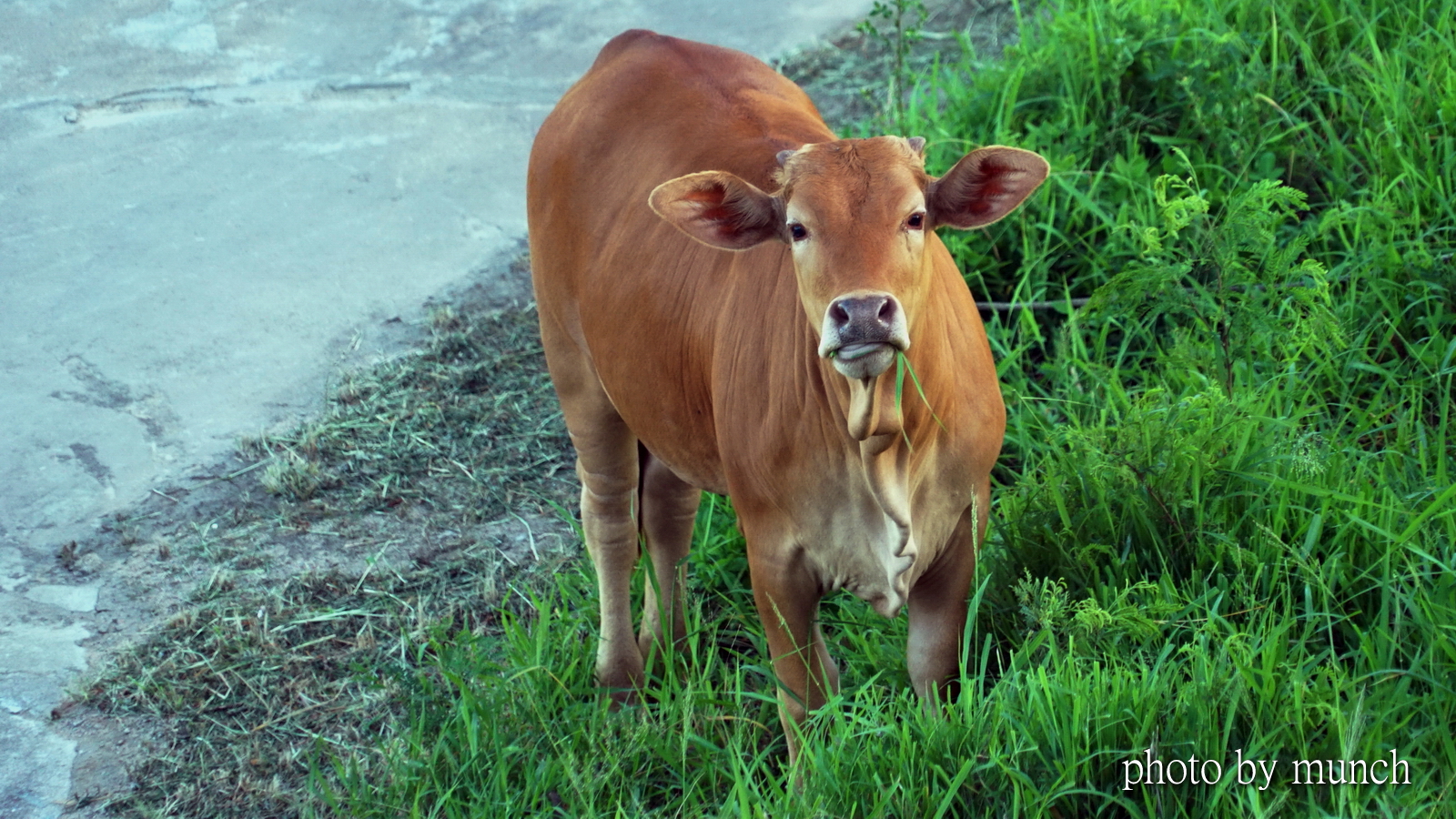 一天遇上牛主人,黃昏時候前來喚牛,停好機車,站在山腳下高呼,就看見牛隻聰山坡各處,往山下集中,再自成縱隊漫步回家。牛主人說,牛群有牛頭,叫著牛頭回來,牛群就會跟著走。