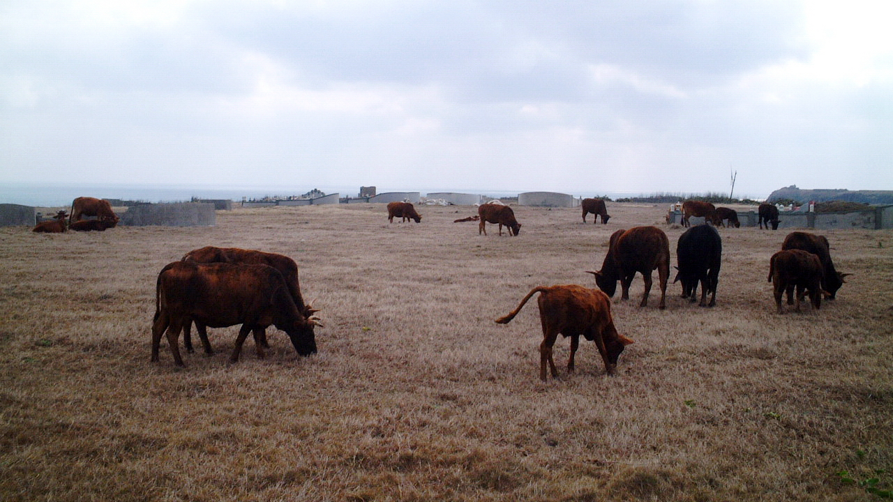 不出貨的望安牛,望安山頭有野牛群,無主那種。居民告訴我一個傳說故事,望安很早就有人養牛賣去當肉牛。一位老人想說養牛放牧,免照顧又好賺,買進一群牛羔,談好牛販買家,開始養在海邊的山坡上。