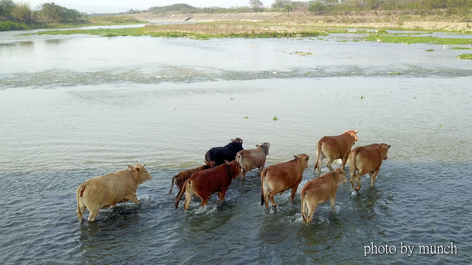 牛能在河岸吃草,過去很日常的景觀,現代則是意味著河岸還沒被完全水泥化,或是割除清空。