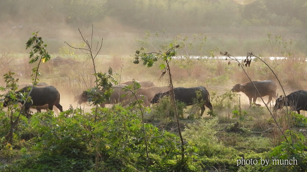 其實,這些牛群不是野牛,晚上住在下游牧區裡,白天放出吃草,所以才會有河床移動的畫面。