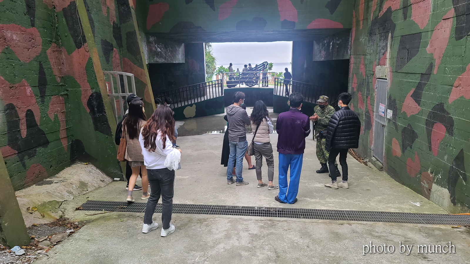 軍事坑道在二戰後,成為國軍駐守陣地,現今開放後,安排有人員進行定時導覽。