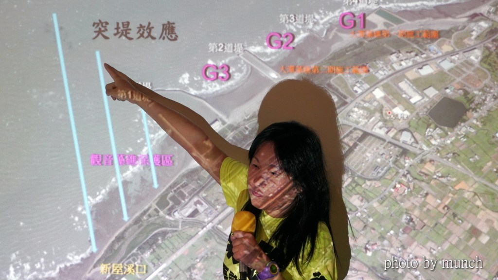 劉靜榆從事海岸污染研究,2005年左右開始研究桃園藻礁,沒想到2007年碰上中油油管工程,她前面作研究,後面怪手就開始挖藻礁,她覺得不可思議,決定讓事件曝光,引發全國關注。