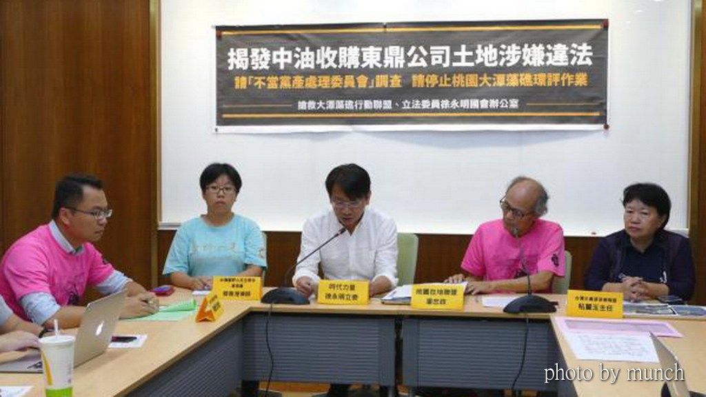 2018年守護藻礁團體潘忠政等人召開記者會,指控中油以22億收購東鼎公司,獲得土地,進行開發,可能涉及國民黨不當黨產問題,希望不當黨產處理委員會進行調查,並且在爭議未釐清前,暫停環評審查。