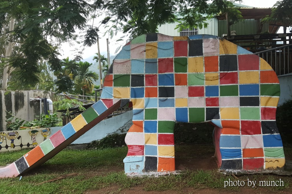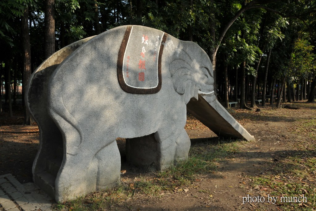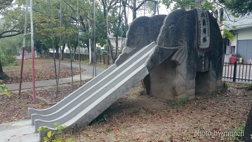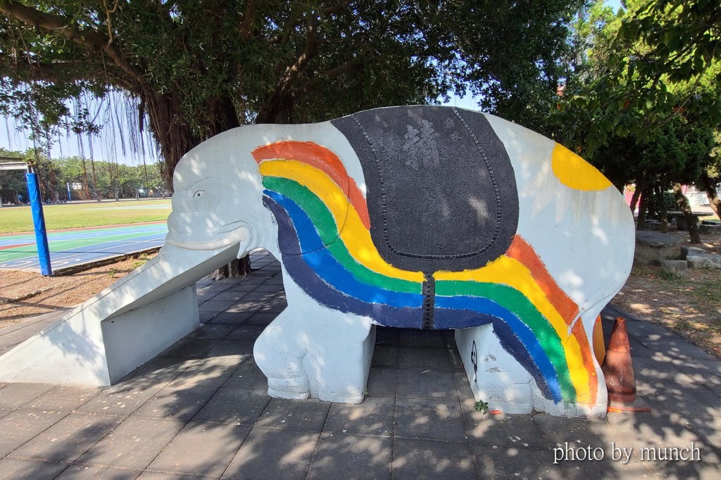 在水泥動物中,大象造型的溜滑梯,成為校園中最熱門的遊樂器材,常常低年級學童下課就是找大象,成為校園中最深記憶。