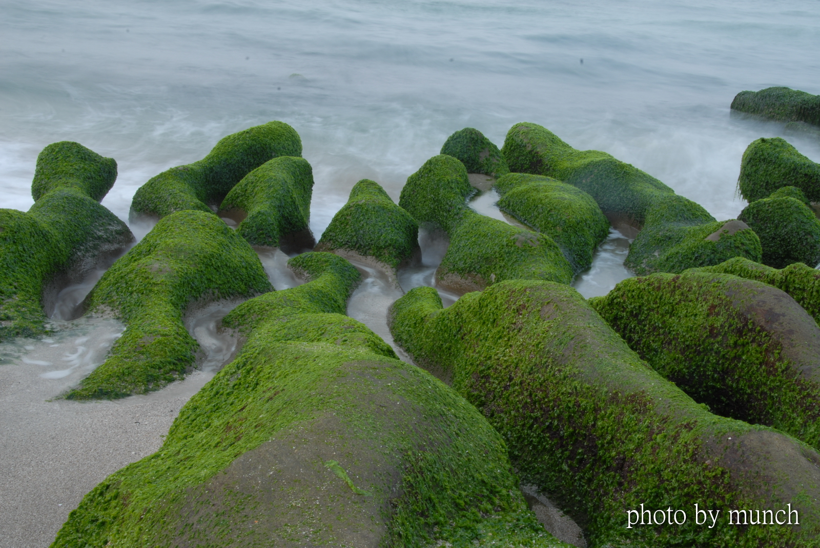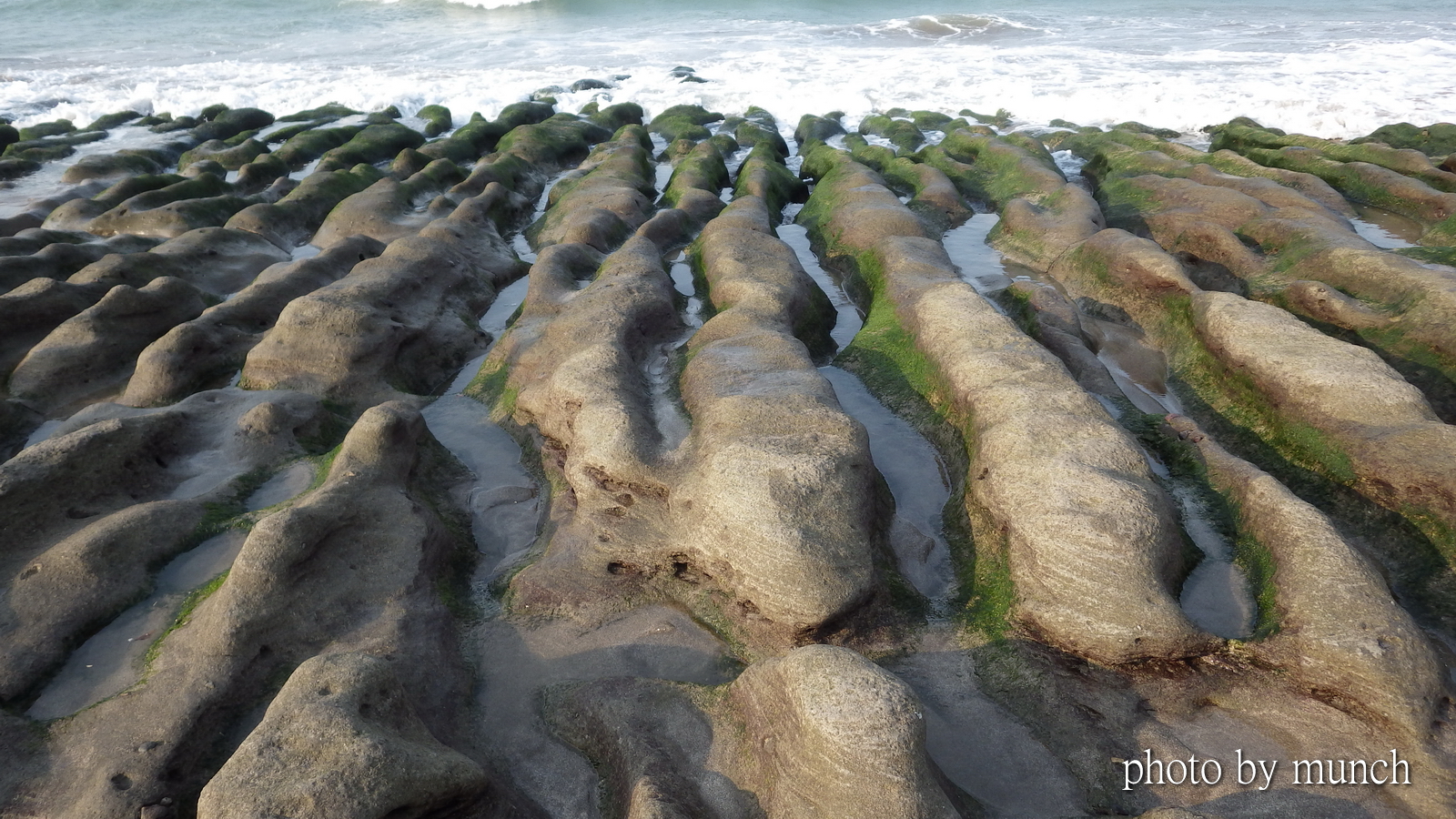 【老梅綠石槽】 By 郭志榮19 四月 2022 新北市石門區的老梅綠石槽,形成是大屯山噴發流下的火山岩,經過風化潮蝕,形成的海蝕溝,再由石蓴、海髮絲等藻類,附生在岩石上,形成的景觀,它不是藻類鈣化累積形成的藻礁。 綠石槽形成約每年3-5月,景色相當美麗,切記不可踐踏、不可採集。 共享此文章: 按一下即可分享至 X(在新視窗中開啟) X 按一下以分享至 Facebook(在新視窗中開啟) Facebook 喜歡 正在載入... 分類:攝影, 旅行標籤:綠石槽, 老梅 發表者:郭志榮 檢視 郭志榮 的所有文章 相關文章 【漫談台灣圓環歷史】 By 郭志榮2 個月 之前 【空拍_泥流光復】 By 郭志榮3 個月 之前 【泥流光復】 By 郭志榮3 個月 之前 發表留言 取消回覆 Δ
