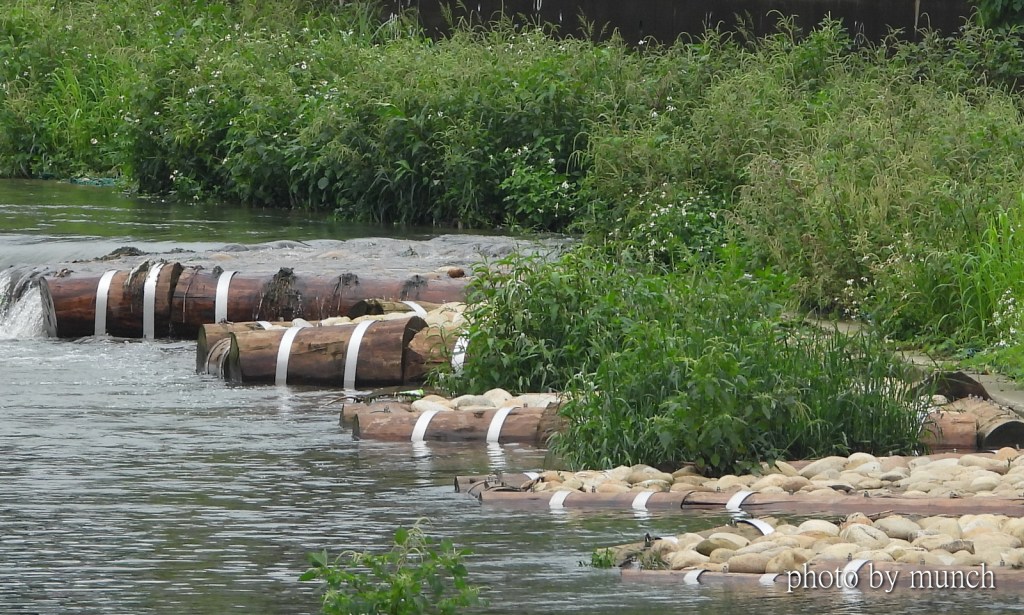 河道部分,為解決流速過快,於是設計三角飯團的突堤,可以減緩流速,並且在突堤間製造緩慢水域,讓魚類可以躲避,不會直送下游。