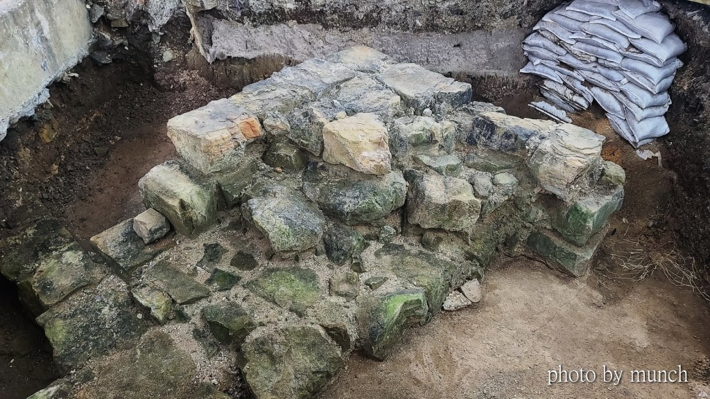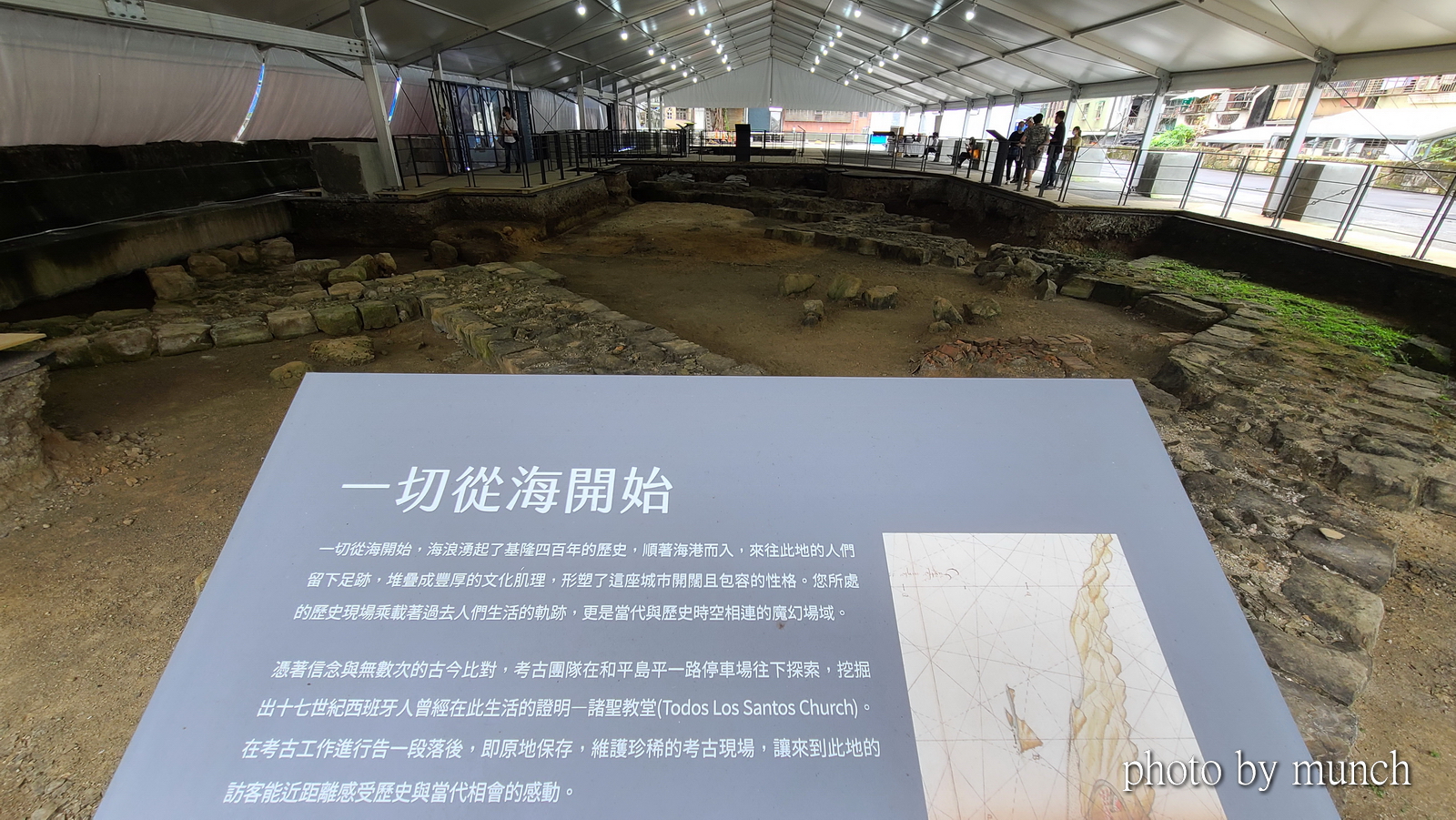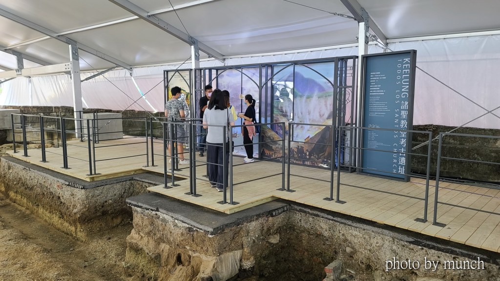 教堂位置,除了西班牙文化層,也有部分史前文物,以及日治時代軍營廁所的遺跡。